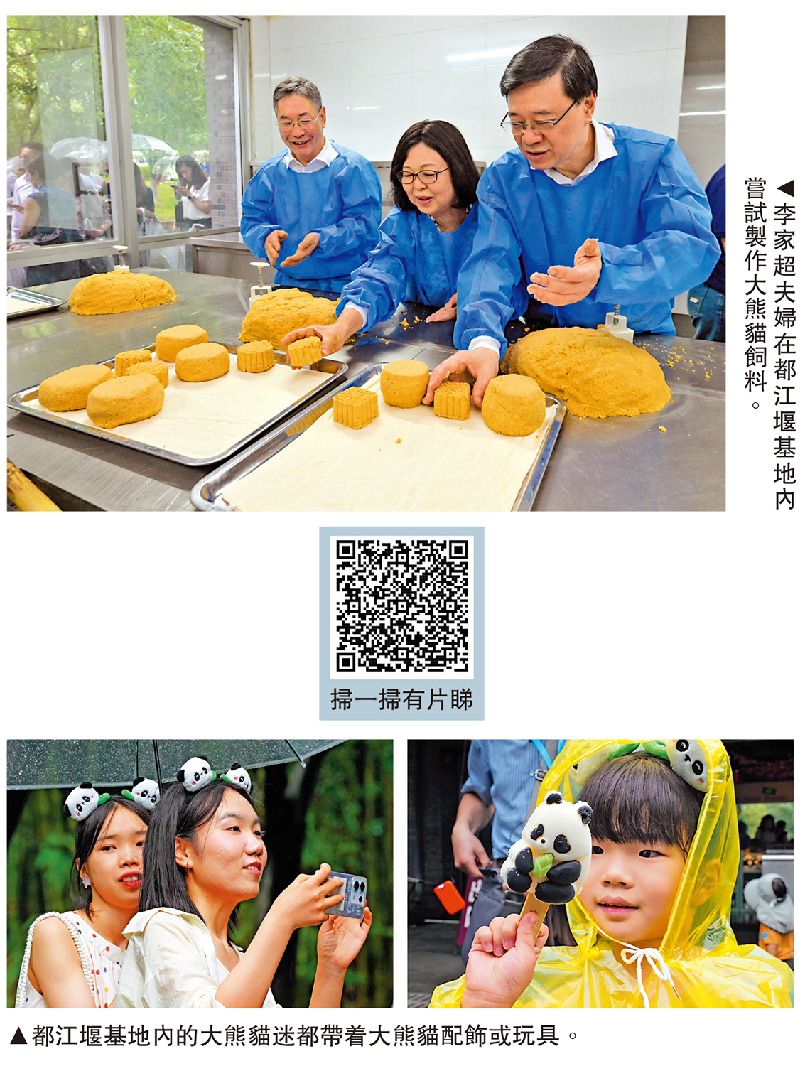 昨天參觀都江堰基地期間,李家超與夫人林麗嬋嘗試製作大熊貓飼料「窩窩頭」。