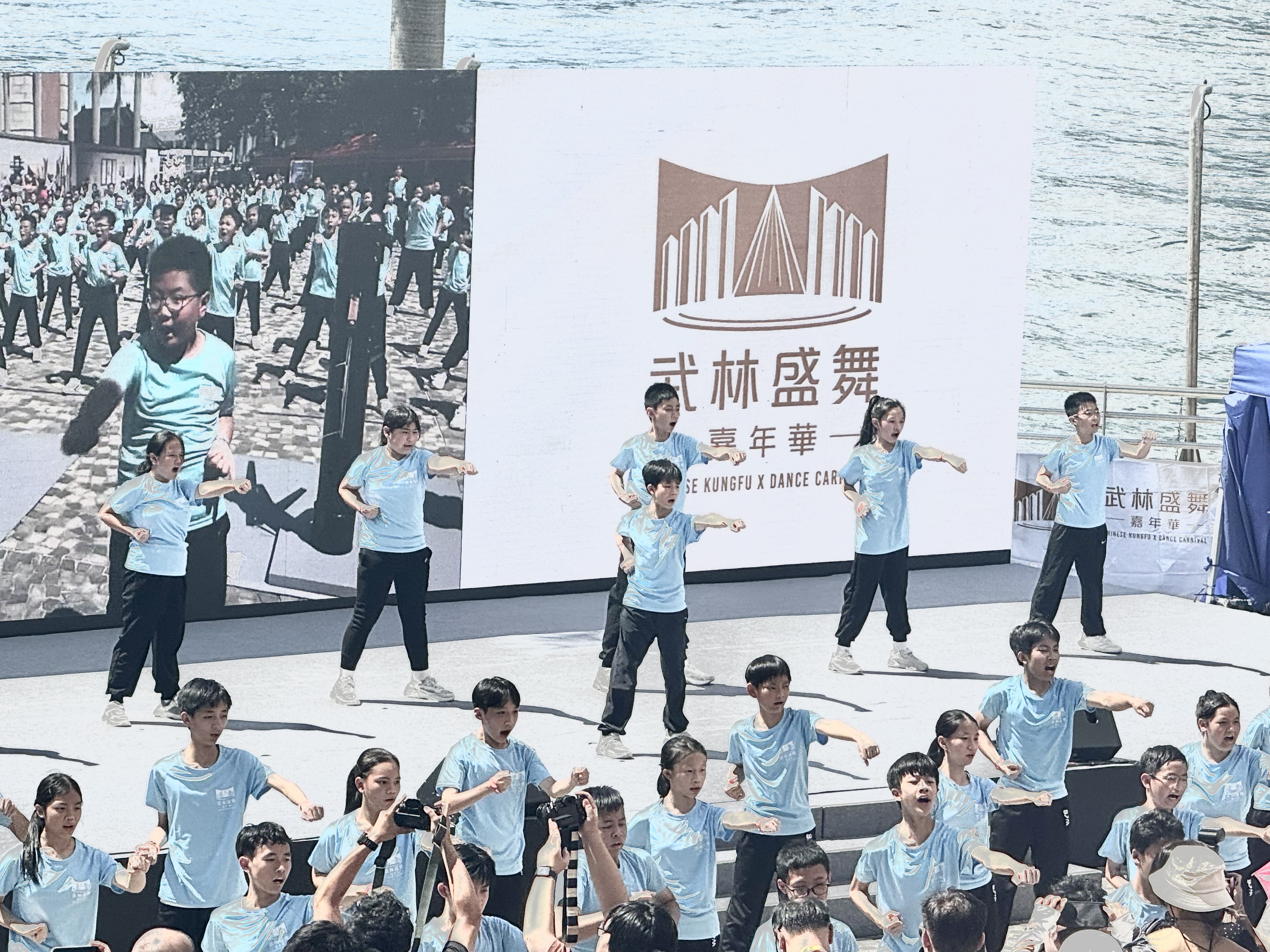 在今天的開幕禮上有本地中小學生表演的千人舞藝操,展現出香港青年健康、自信、朝氣蓬勃的精神風貌。先由武術世家出身的龐景峰帶頭表演白鶴派功夫,隨後幾百名中小學生於文化中心主舞台及露天廣場一帶表演千人武藝操,同步大展拳腳,場面震撼,吸引大批市民及遊客圍觀。