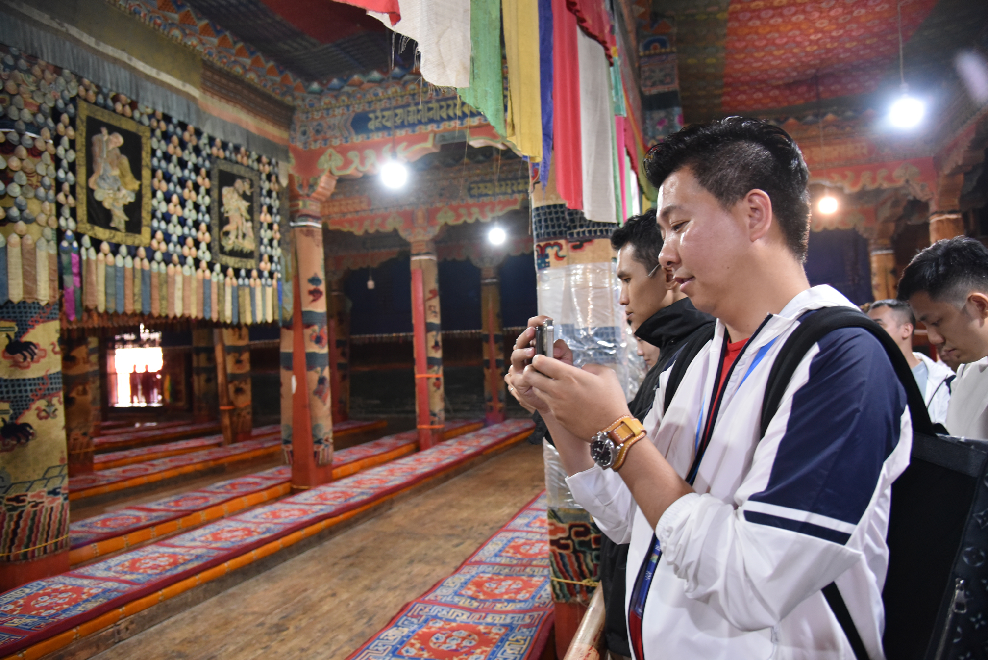 此次「青海線」活動的第一站就來到了塔爾寺,在一個多小時的參觀時間裏,香港青年們認真聆聽了講解員有關塔爾寺歷史、典故、文化和建築特點的講解。很多人更是拿出手機和和相機,進行了詳細記錄,希望回去後與香港的親朋好友進行分享。