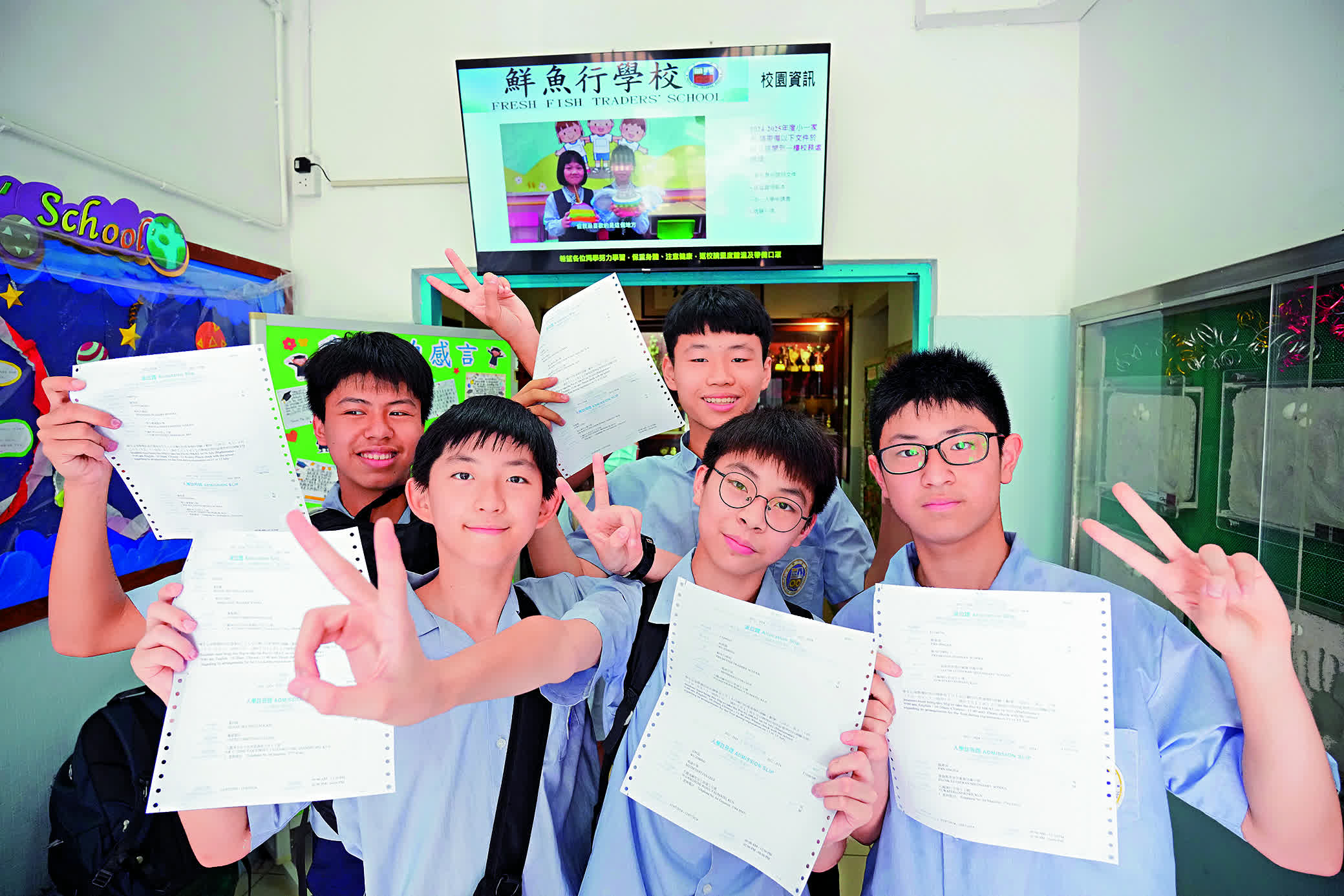 大公報記者在放榜大日子來到鮮魚行學校,同學普遍滿意結果,校園內氣氛歡欣。施志勁指出,今年滿意率約九成與去年相若,獲派英中比率較去年稍高。