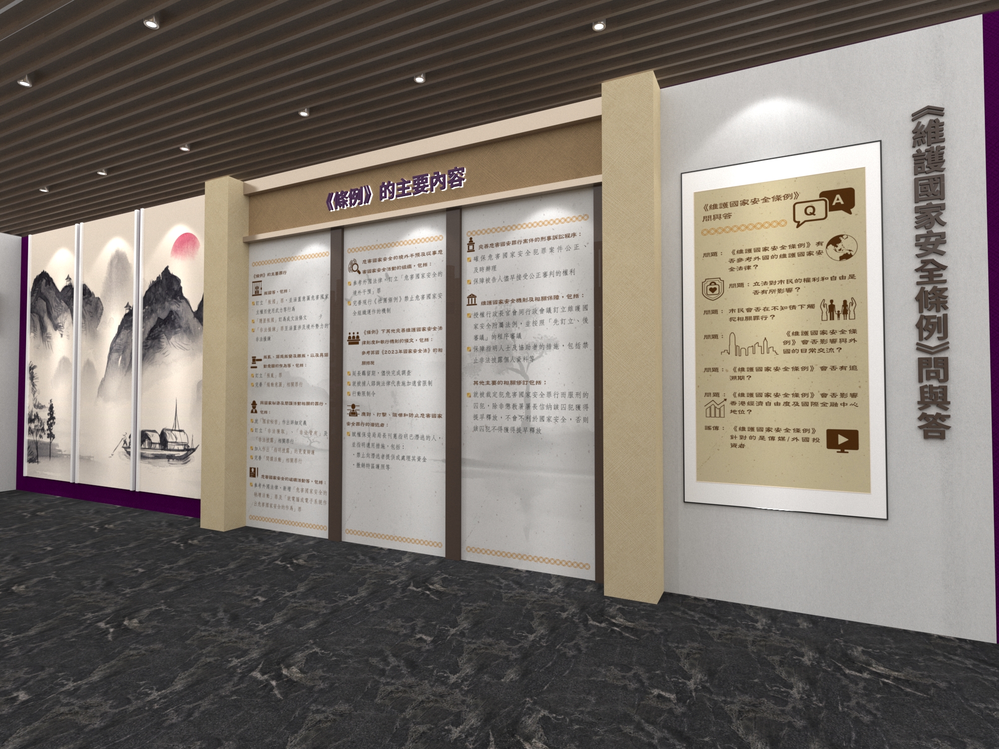 更新版展覽除涵蓋香港國安法相關內容外,亦增設一個全新的虛擬展覽廳,介紹《維護國家安全條例》的特點和主要罪行等,輔以簡單易明的「問與答」,讓公眾人士對香港特別行政區維護國家安全的法律制度和執行機制有更全面的認識。