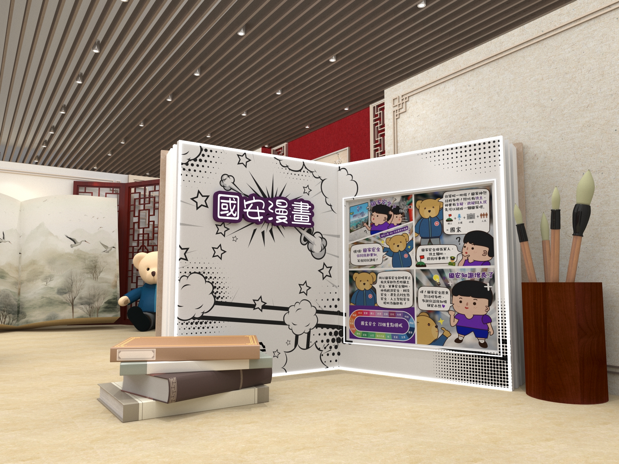 更新版展覽繼續以充滿中華文化特色的香港故宮文化博物館為虛擬場景,並加入保安局的吉祥物「保安熊仔」陪伴參觀者遊覽,提升趣味性。此外,虛擬展覽亦首次推出國安主題的連載漫畫和動畫,以深入淺出的方式闡釋維護國家安全和守法的重要性。參觀人士,特別是青少年,亦可透過含「保安熊仔」元素的小遊戲學習相關知識。