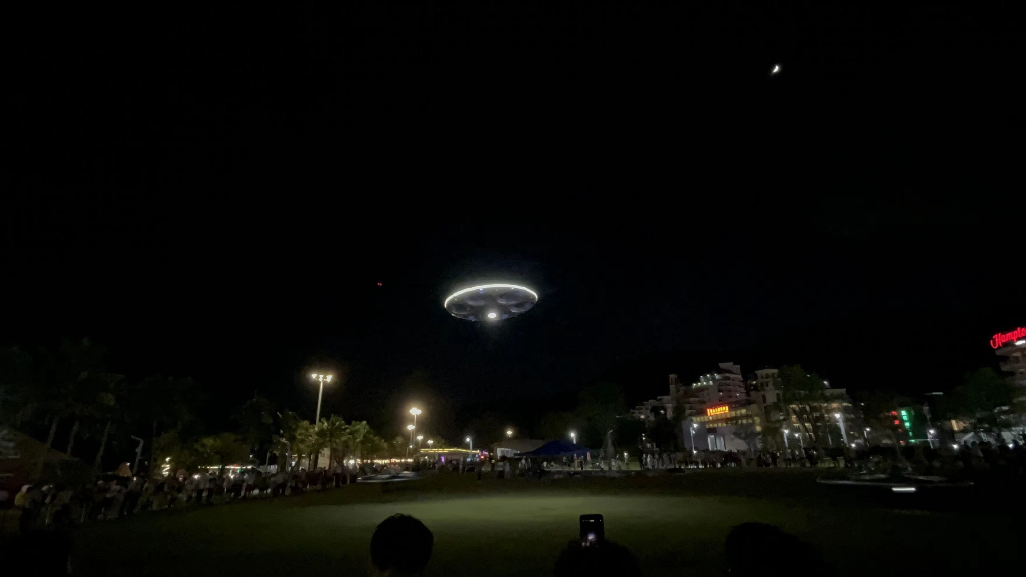(大公文匯網 記者郭若溪 實習生黃佳賢)深圳低空經濟發展再迎新進展。7月11日晚,在深圳市鹽田區大梅沙公園的草坪上,一款外形酷似UFO的無人機徐徐升空,吸引了眾多市民遊客圍觀。這是載人飛碟eVTOL鹽田區首飛,標誌着載人飛碟eVTOL(電動垂直起降飛行器)正式在鹽田區展開常態化運行。