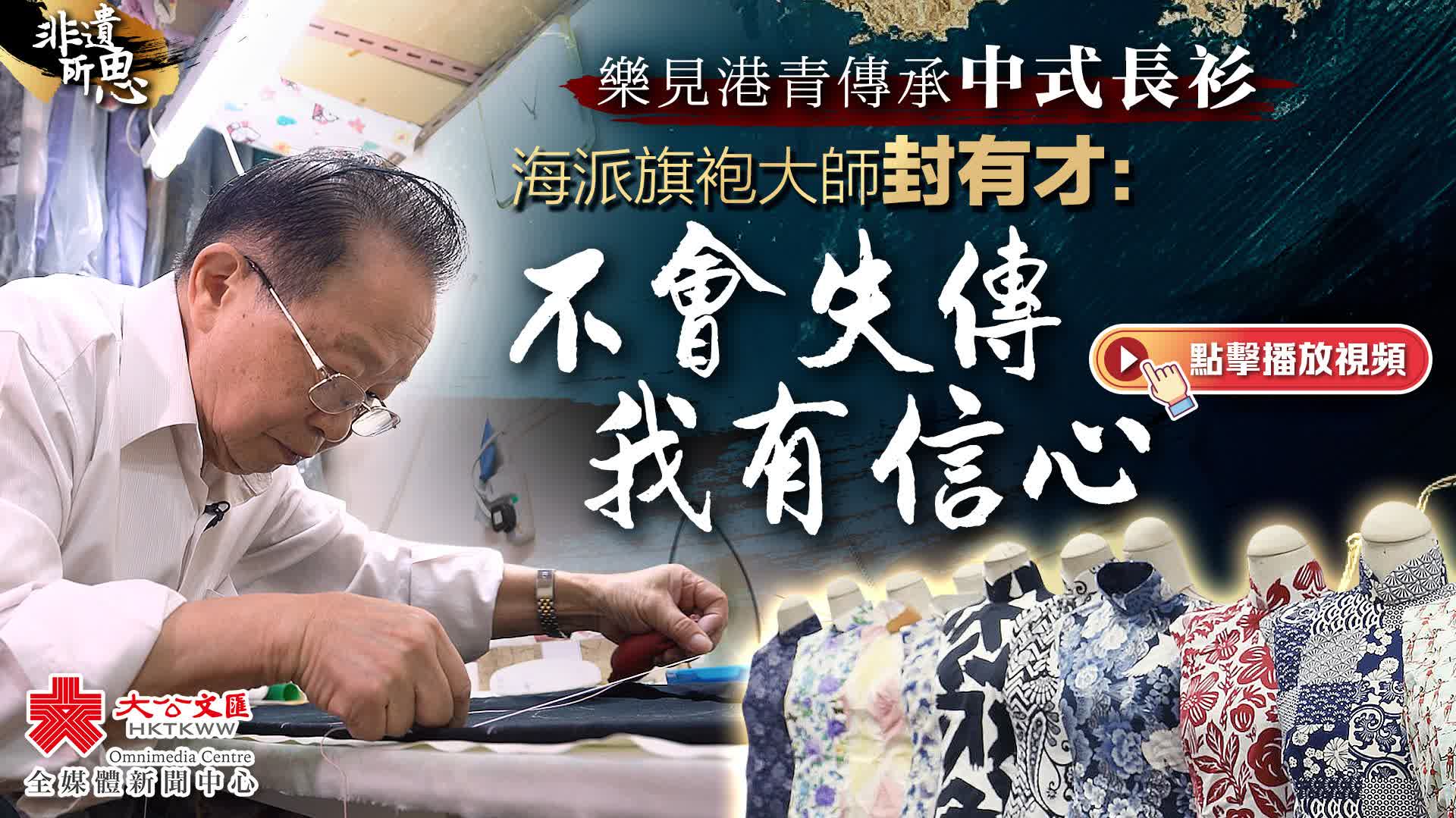 「旗袍最重要的是線條美,一眼看過去從頭看到尾,整個人的氣質和美態完全是不同的。」正在製衣之人,是出身於裁縫世家、三代皆為裁縫的封有才師傅。他是香港有名的「海派旗袍大師」,從接觸裁縫行業到從業至今,已有超過60年光景,與他同時入行的老行尊,而今只剩下4人還在製作長衫。