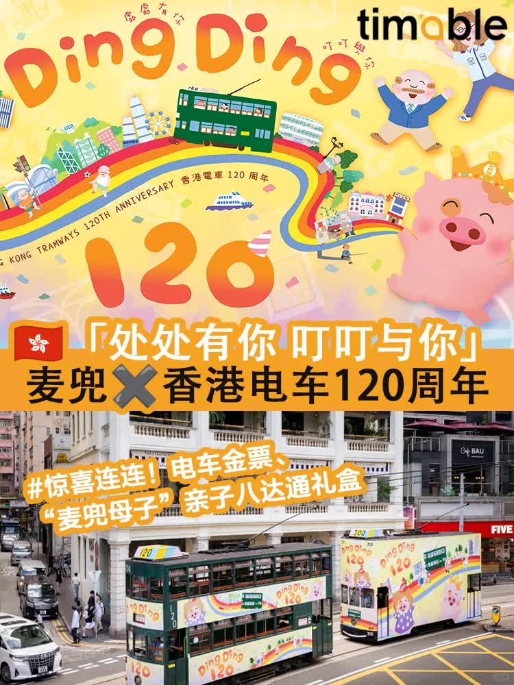 大公文匯全媒體報道,為慶祝香港電車(電車)服務120周年,香港電車近日於社交媒體發文指,「叮叮」首度夥拍同樣本地動畫角色「麥兜」,以「處處有你 叮叮與你」為題,推出主題電車及連串慶祝活動。市民只需拍下120周年主題電車的相片、短片、上載至公開的Facebook或Instagram個人賬號,標籤(Hashtag)「#TRAM120」+ 讚好及關注電車官方Facebook/Instagram,就有機會獲得一年免費任搭電車+999.9黃金鍍金120周年誌慶版「電車金票」,獎品僅限3份。
