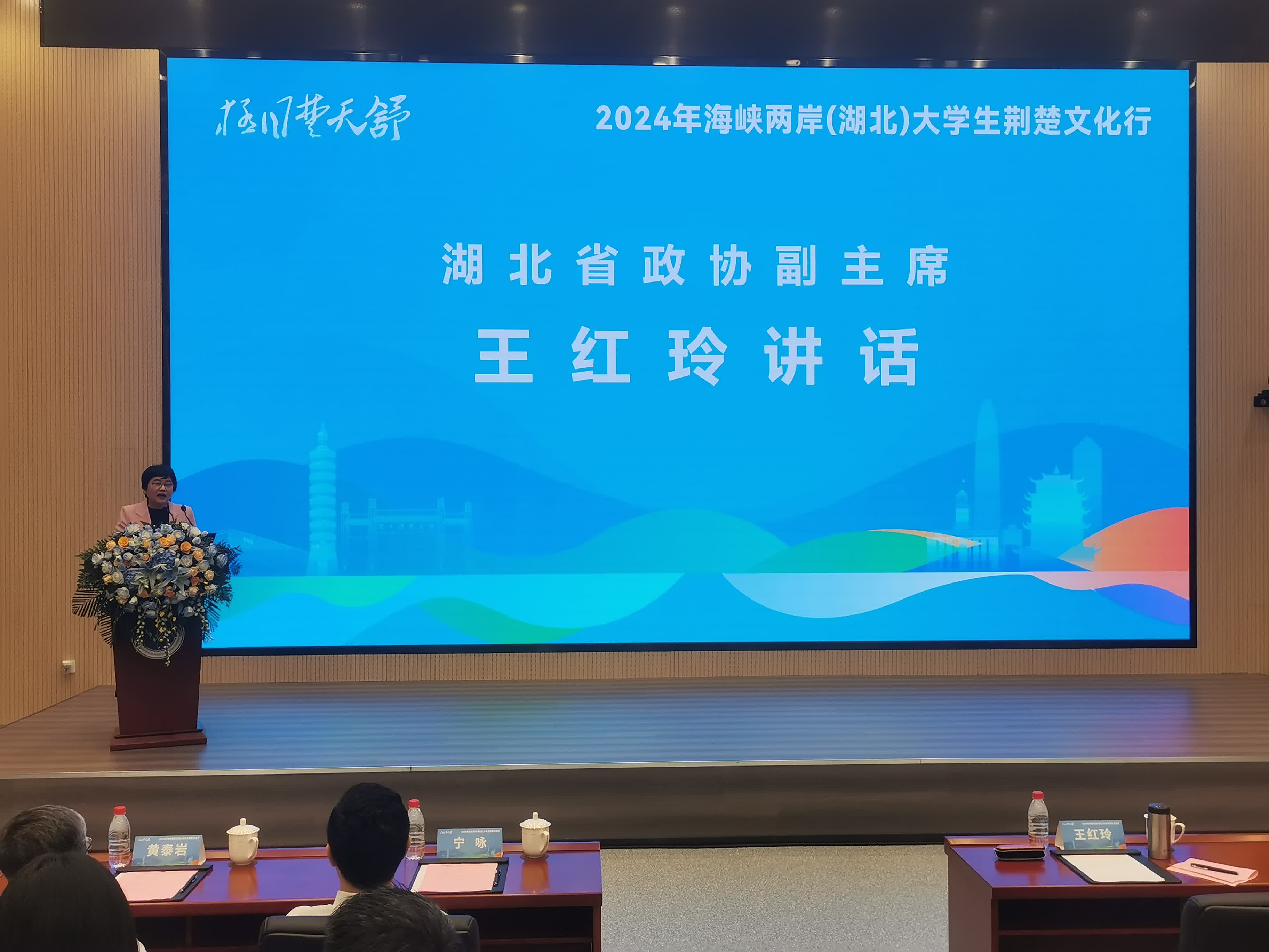 (大公文匯網記者 張帥、歐陽思柔 武漢報道)7月12日下午,「極目楚天舒——2024年海峽兩岸(湖北)大學生荊楚文化行」活動在武漢大學舉行開幕式。湖北省政協副主席王紅玲在開幕式致辭時寄語兩岸青年,要做民族復興的推動者、中華文化的弘揚者、融合發展的踐行者,用眼睛和腳步感知祖國大陸的發展變化,不負時代、不負韶華,為推動兩岸關係和平發展做出青年一代的貢獻。