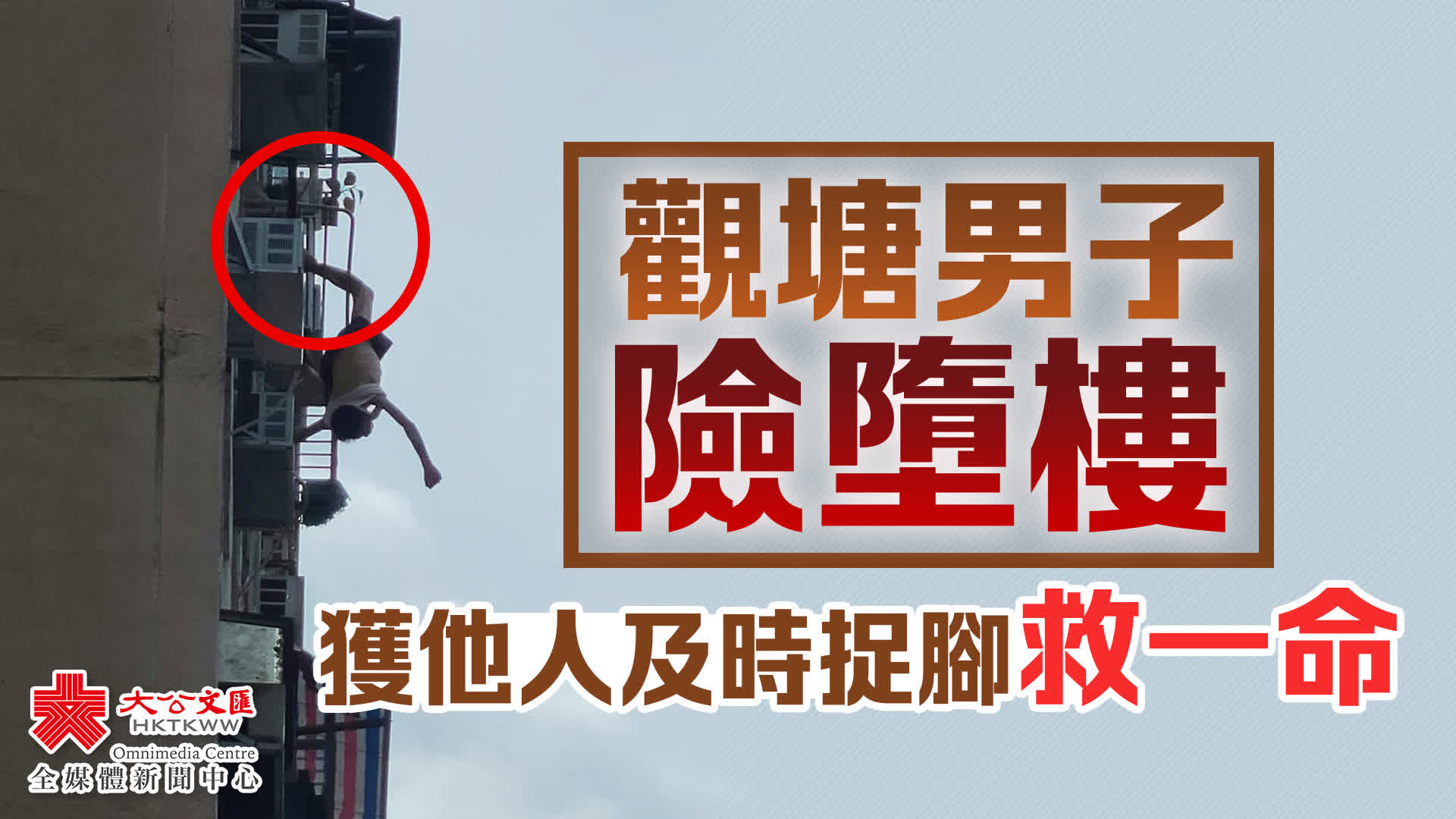 大公文匯全媒體報道,觀塘翠屏北邨發生驚現一幕。今日(12日)下午3時許,一名男子在翠屏北邨翠柳樓懷疑從高處墮下,幸獲他人及時捉住腳部,再拉回安全位置,救回一命。救援人員趕赴現場施救,事主之後清醒由救護車送往聯合醫院。