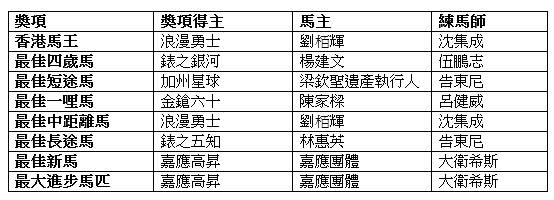 此外,「浪漫勇士」季內囊括全部三項香港2000米一級賽冠軍,成功連續第三年榮膺最佳中距離馬。