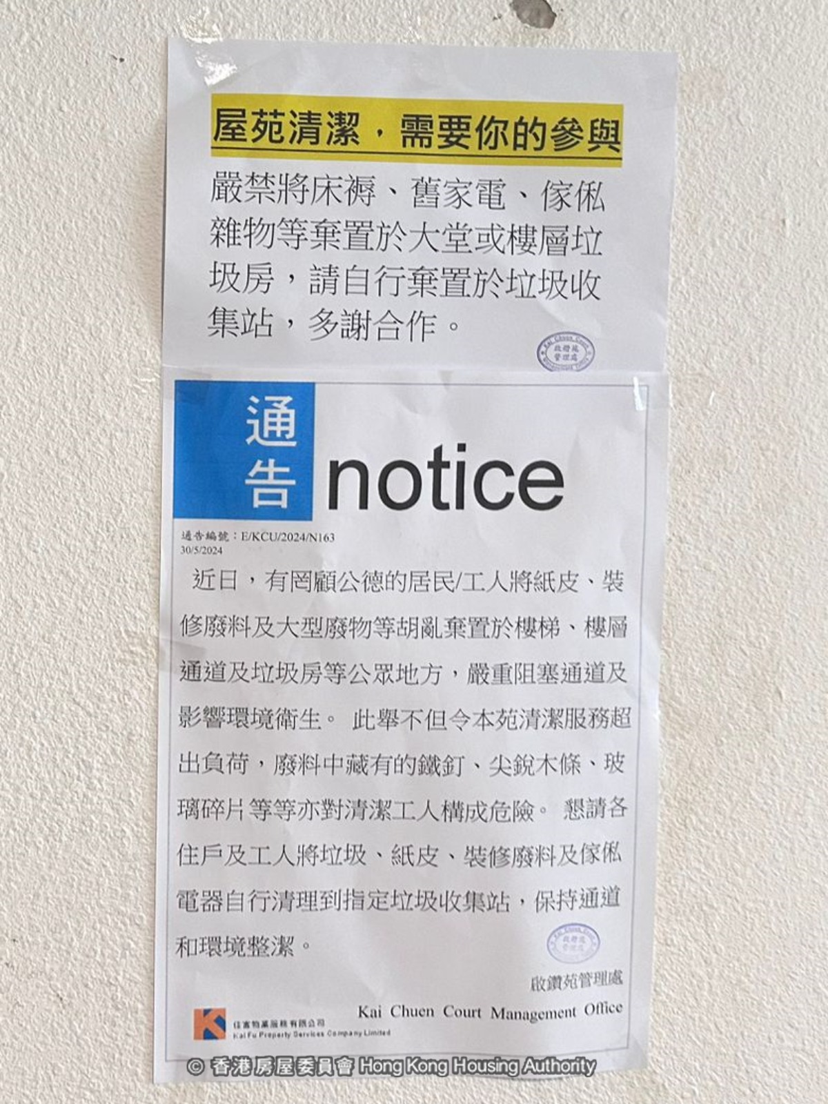 房委會提示各位居民,在入伙及農曆七月期間,小心防火及注意門戶安全。遇事要保持鎮定並通知管理人員。如有任何管理上的意見可向管理處反映。