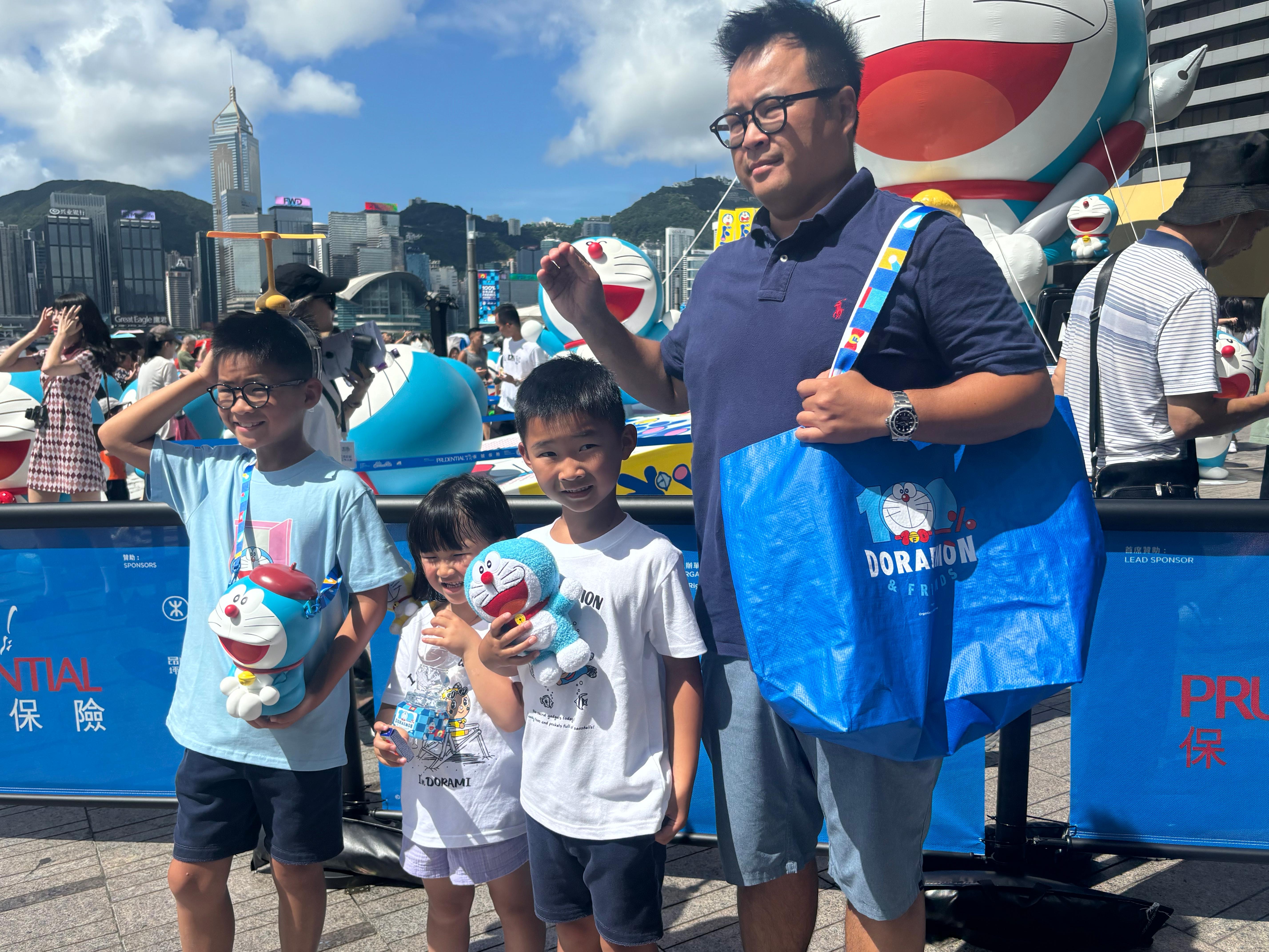 陳先生已經移民去美國20年,因為很喜歡多啦A夢,同時也影響自己9歲和7歲的兒子,所以在網上看到香港有這個展的時候,便當機立斷買好了票,帶着家人返港看展。陳先生形容,多啦A夢是大家的集體回憶,並且本次展覽有很多關於香港的元素,包括星光大道展區有香港電影工作者的漫畫化人形立牌、亦有專為香港而製作的6分鐘短片。他表示可以在喜歡的動漫裏看到熟悉的人和夜景,感覺很特別。