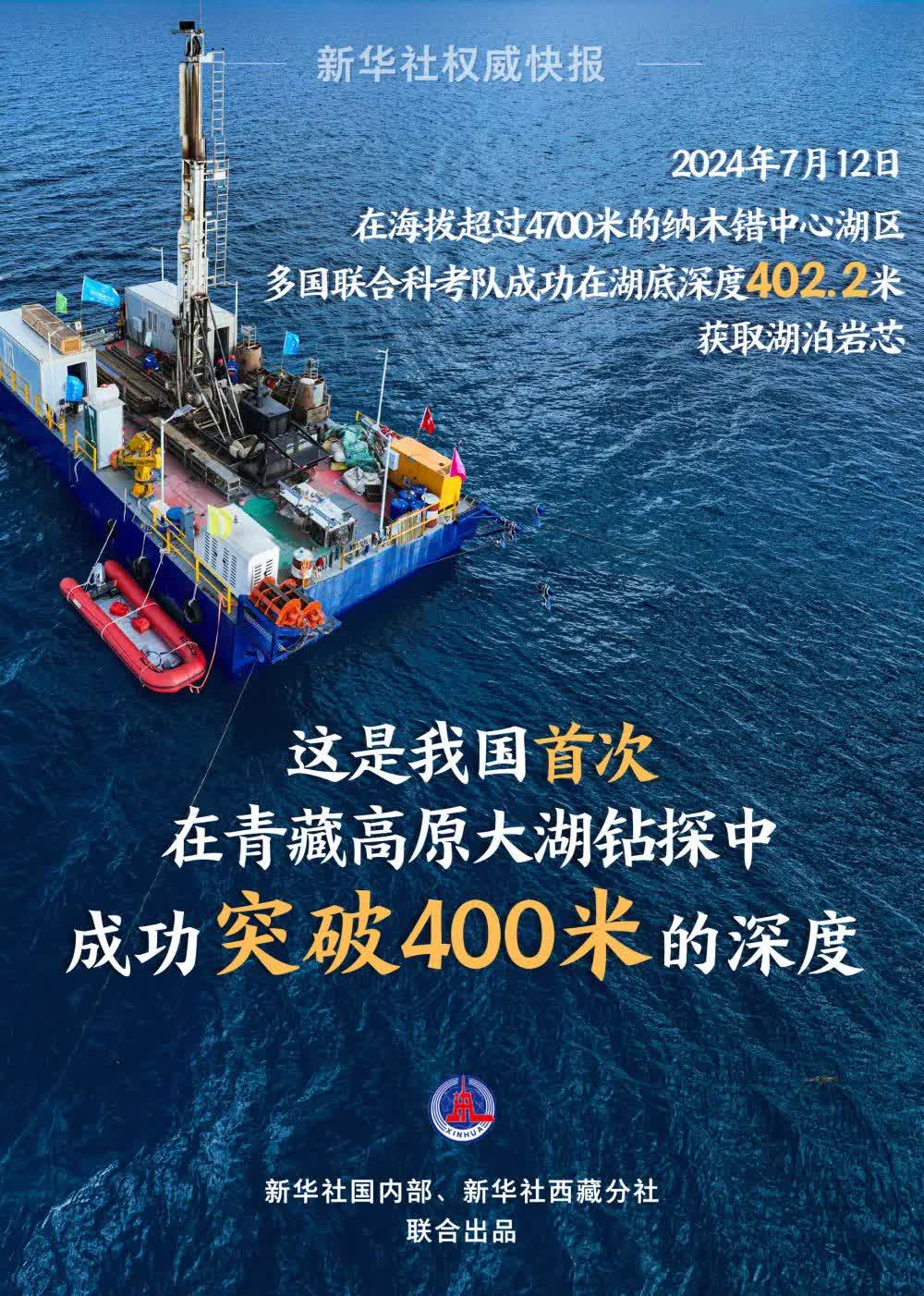 據新華社報道,從青藏高原湖底沉積物取岩芯,看百萬年來氣候變幻。這場納木錯湖泊科考是突破,亦是見證。
