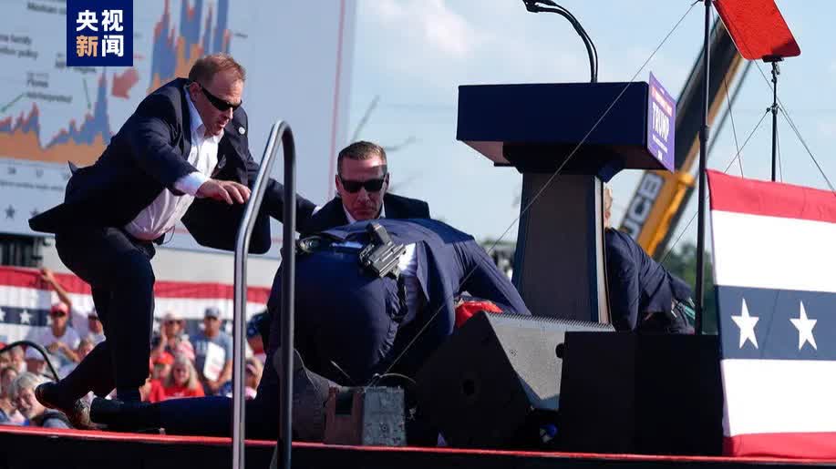 直播畫面顯示,特朗普右耳有血跡。美國特勤局人員向媒體證實,特朗普情況安全。
