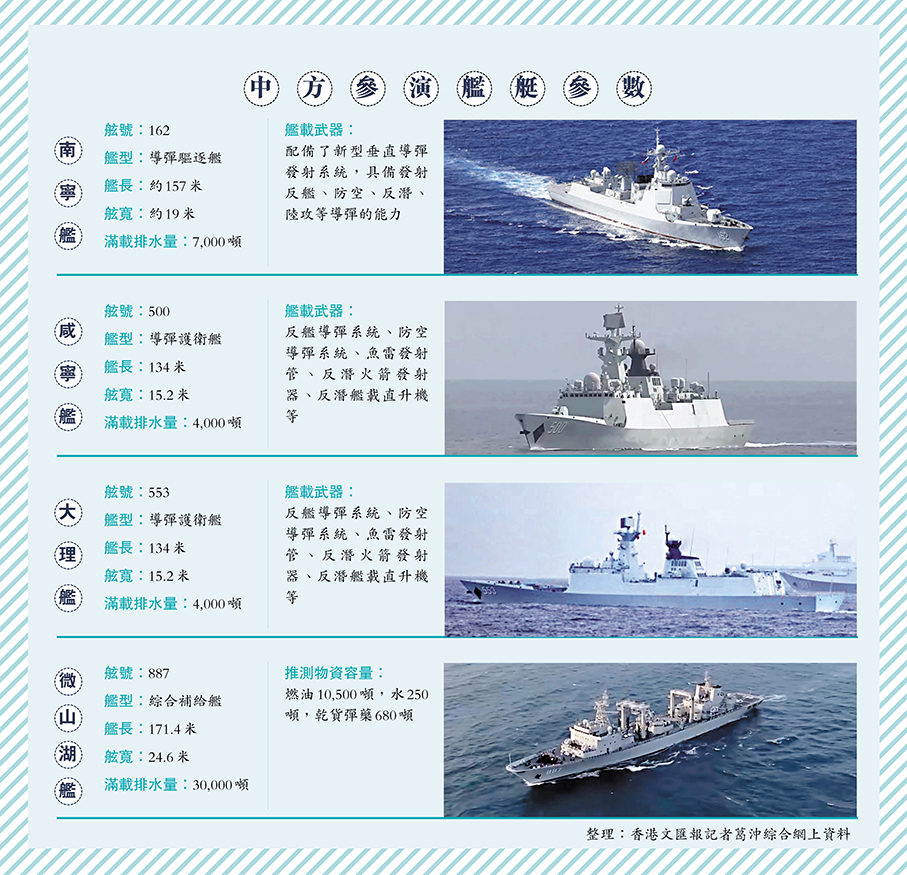 咸寧艦、大理艦此次都是首次參加中外聯演任務。咸寧艦是我國自主設計建造的新型導彈護衛艦。重點擔負編隊區域防空、協同反潛等任務。入列以來,先後圓滿完成了遠海聯合訓練等20餘項重大演訓活動,長期擔負戰備執勤任務。大理艦是我國自主設計建造的新型導彈護衛艦,具備對海、對空、反潛等作戰能力,2023年8月正式加入人民海軍戰鬥序列,不到一年便全面形成戰鬥力。