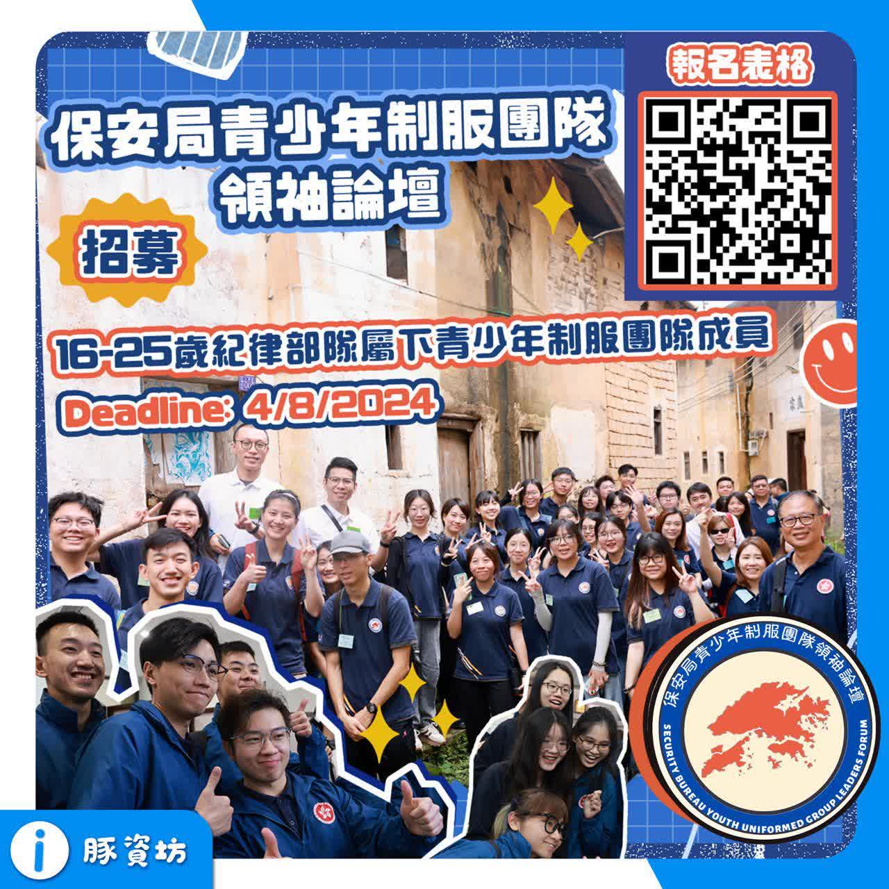 大公文匯全媒體報道,保安局現正招募新一屆「保安局青少年制服團隊領袖論壇」成員,參加者必須為保安局各紀律部隊或輔助部隊青少年制服團隊成員,年齡介乎16至25歲。