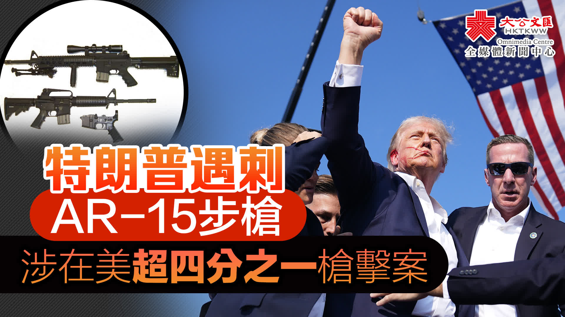 大公文匯全媒體報道,當地時間13日下午,美國前總統特朗普在賓州巴特勒市舉行的競選集會現場發生槍擊事件,特朗普右耳受傷,臉上有血漬,後被特勤局人員護送離開。