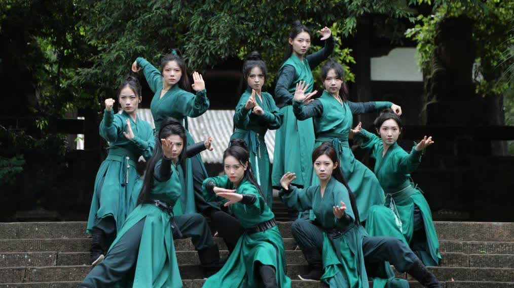 一切都順理成章。4月29日,第四屆峨眉武術傳承大會如期舉辦,中國首支峨眉派女俠團也正式成團,「95後」的凌雲帶着8位「00後」小妹妹,出道即巔峰。