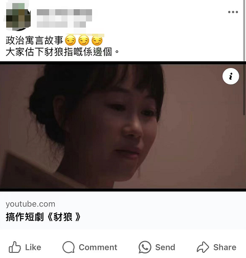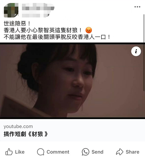 短片首發平台是自媒體「萬人頻道」,該頻道非官方平台,重在表達民間意見。不少網民積極轉發評論互動,紛紛表示:「狼來了,做個精靈醒目人!」「世途險惡,香港人要小心黎智英這隻豺狼!」「講得好!」等等。
