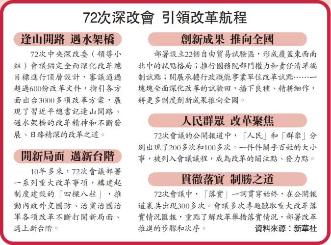 同日播發的新華全媒頭條《將新時代改革開放進行到底──從72次中央深改委(領導小組)會議讀懂習近平的改革之道》也提到,72次會議的公開報道中,「人民」和「群眾」分別出現了200多次和100多次。「正確的道路從哪裏來?從群眾中來。」習近平總書記這樣強調。