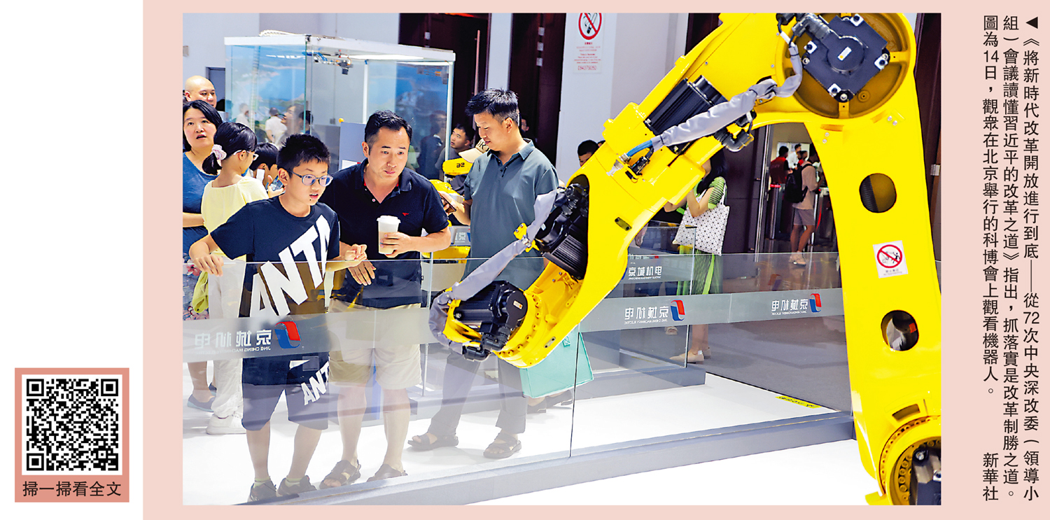 新華社15日播發題為《將新時代改革開放進行到底──從72次中央深改委(領導小組)會議讀懂習近平的改革之道》的文章。文章指出,黨的十八大以來,從中央全面深化改革領導小組,到中央全面深化改革委員會,習近平總書記主持召開72次重要會議,引領波瀾壯闊、氣象萬千的改革航程。72次中央深改委(領導小組)會議錨定全面深化改革總目標進行頂層設計,審議通過超過600份改革文件,指引各方面出台3000多項改革方案。回望新時代全面深化改革歷程,抓落實是要求,是行動,更是改革制勝之道。