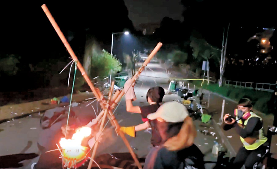 控方昨日續在庭上展示「滅龍」群組的對話,顯示有成員上傳及轉發中大暴動現場測試「火炮台」的影片「【火炮台測試成功】(附操作教學片段)」,即以竹和頭盔等物製成的巨型丫叉炮台,李家田當時有回覆「呢舊嘢10次得兩次過10米」。李昨日在庭上辯稱,他當時是在「評論」。