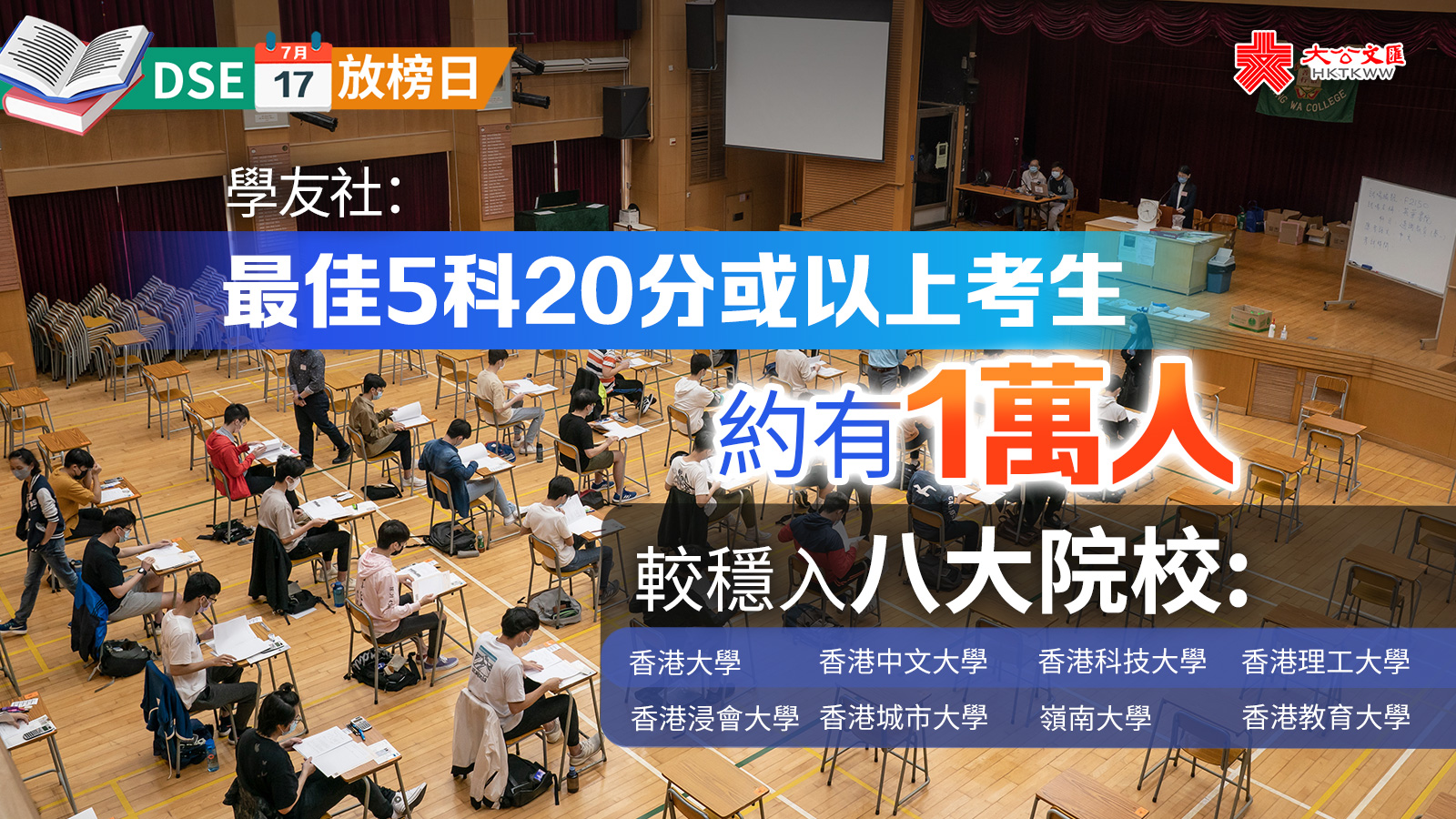 吳寶城表示,最佳5科20分或以上的考生約有1萬人,相信他們較穩入八大院校,對於分數介乎17至19分的考生就要作兩手準備,在聯招中考慮要否加入自資的選擇。