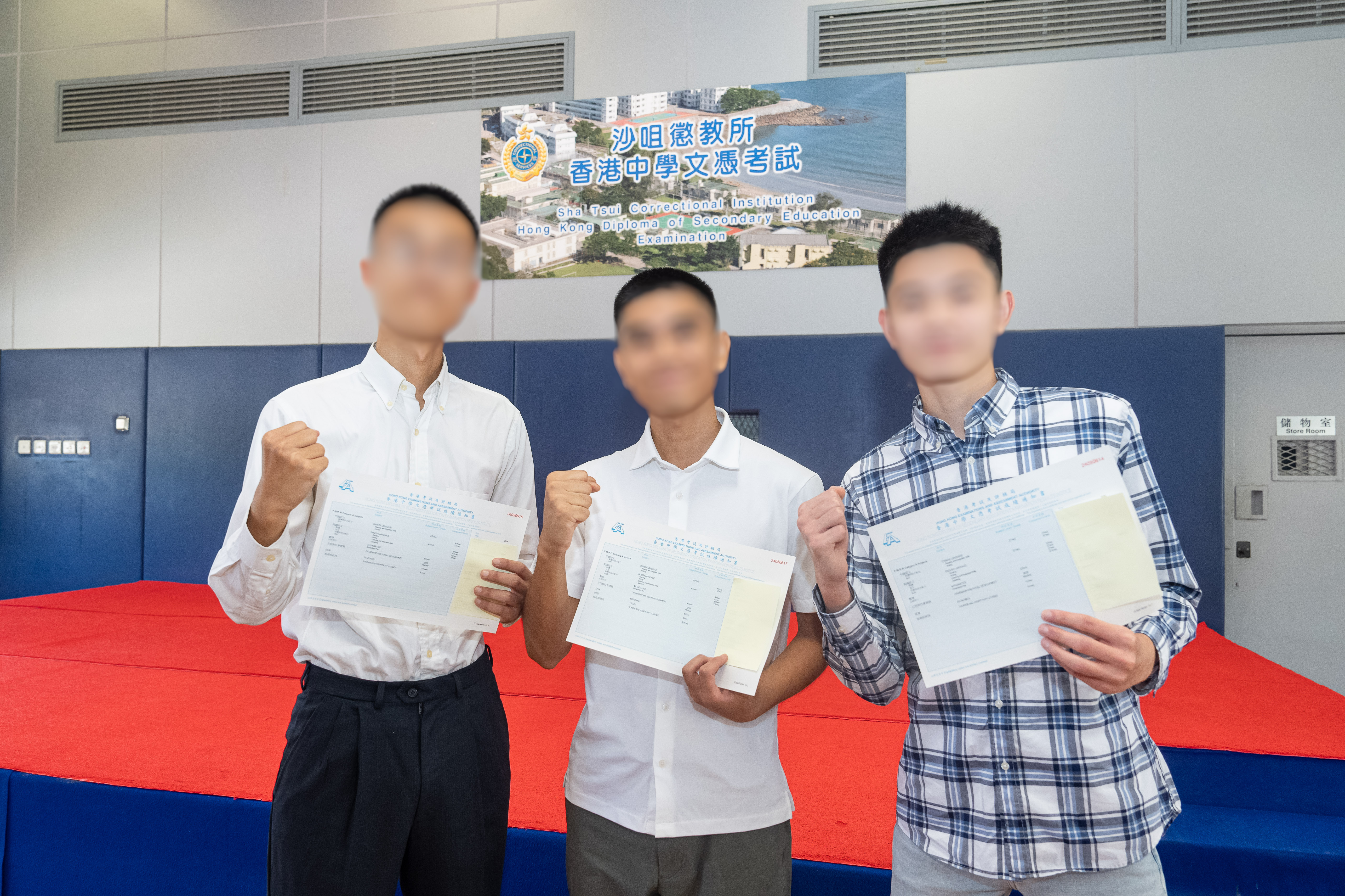 14名在囚考生共報考86張試卷,其中80張取得二級/達標或以上成績,佔總卷數93%,當中有4名考生考獲符合入讀本地大學的基本入學要求,其中一名沙咀懲教所考生考獲五科最高共22分及在公民與社會發展科達標的成績,當中分別在經濟科及物理科取得5的佳績。