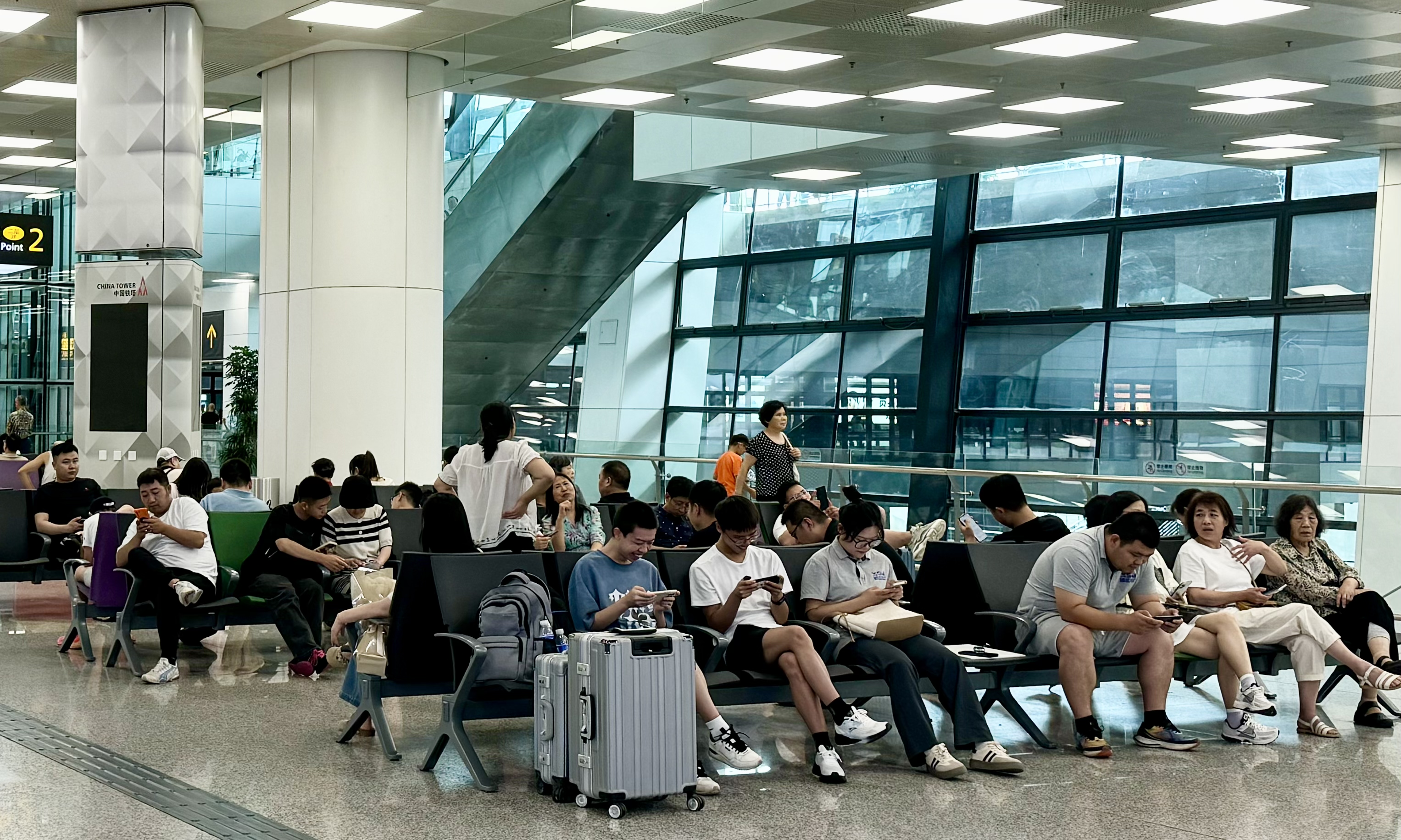 截至下午4時,新鄭機場已有超過100多架航班延誤,其中因天氣等原因臨時取消的航班有32架。候機大廳內擠滿了焦急等待的旅客,本報記者採訪了候機廳的旅客,其中一位旅客表示:自己已經在機場等待了三個多小時,仍未收到關於航班起飛的通知。