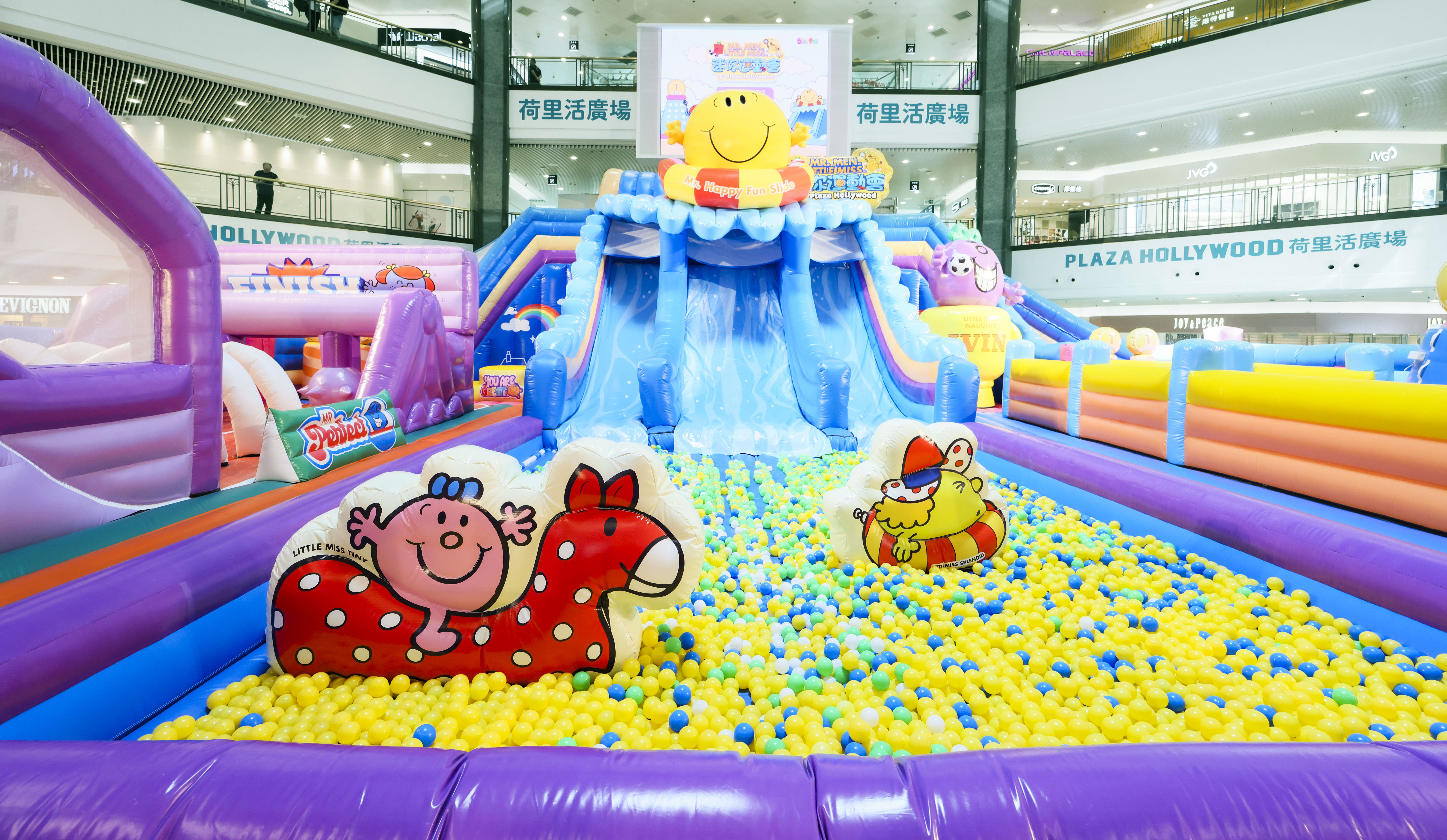 大公文匯全媒體報道,深受全球大小朋友喜愛、家傳戶曉的英國兒童繪本《MR. MEN LITTLE MISS》,今個暑假將會來到荷里活廣場,首次與STAYFUN及商場攜手舉辦巨型充氣樂園「Mr. Men Little Miss迷你運動會@Plaza Hollywood」。由7月19日至9月1日,明星廣場將化身為佔地約8000呎的室內巨型充氣樂園,Mr. Men Little Miss中的人氣角色如Mr. Happy、Little Miss Naughty、Mr. Bump、Little Miss Hug等,將穿梭於充氣樂園的各個角落,陪伴小朋友於暑假大玩特玩。