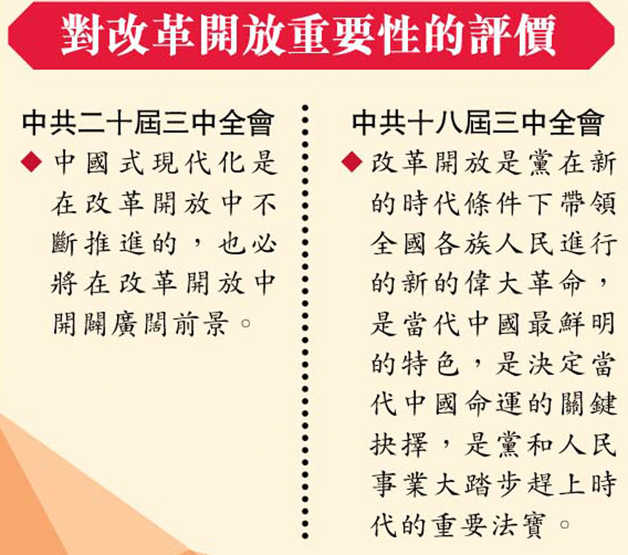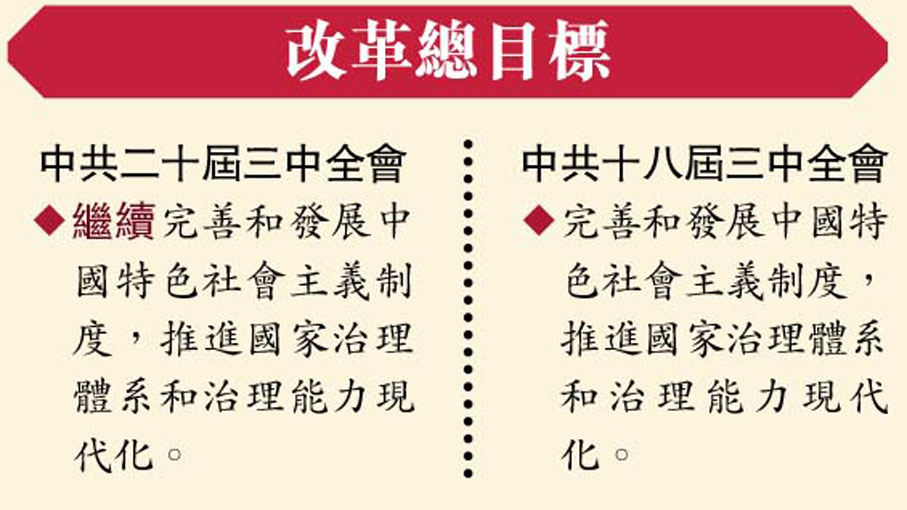 (香港文匯報記者 王玨 北京報道)中共二十屆三中全會18日在北京閉幕。全會審議通過了《中共中央關於進一步全面深化改革、推進中國式現代化的決定》。 北京師範大學政府管理學院教授唐任伍對香港文匯報分析稱,和中共十八屆三中全會主要審議的文件《中共中央關於全面深化改革若干重大問題的決定》相比,中共二十屆三中全會的審議文件是「進一步」全面深化改革,並「推進中國式現代化」,而且提出了清晰的改革時間表,要求以五年為限完成本決定提出的改革任務。