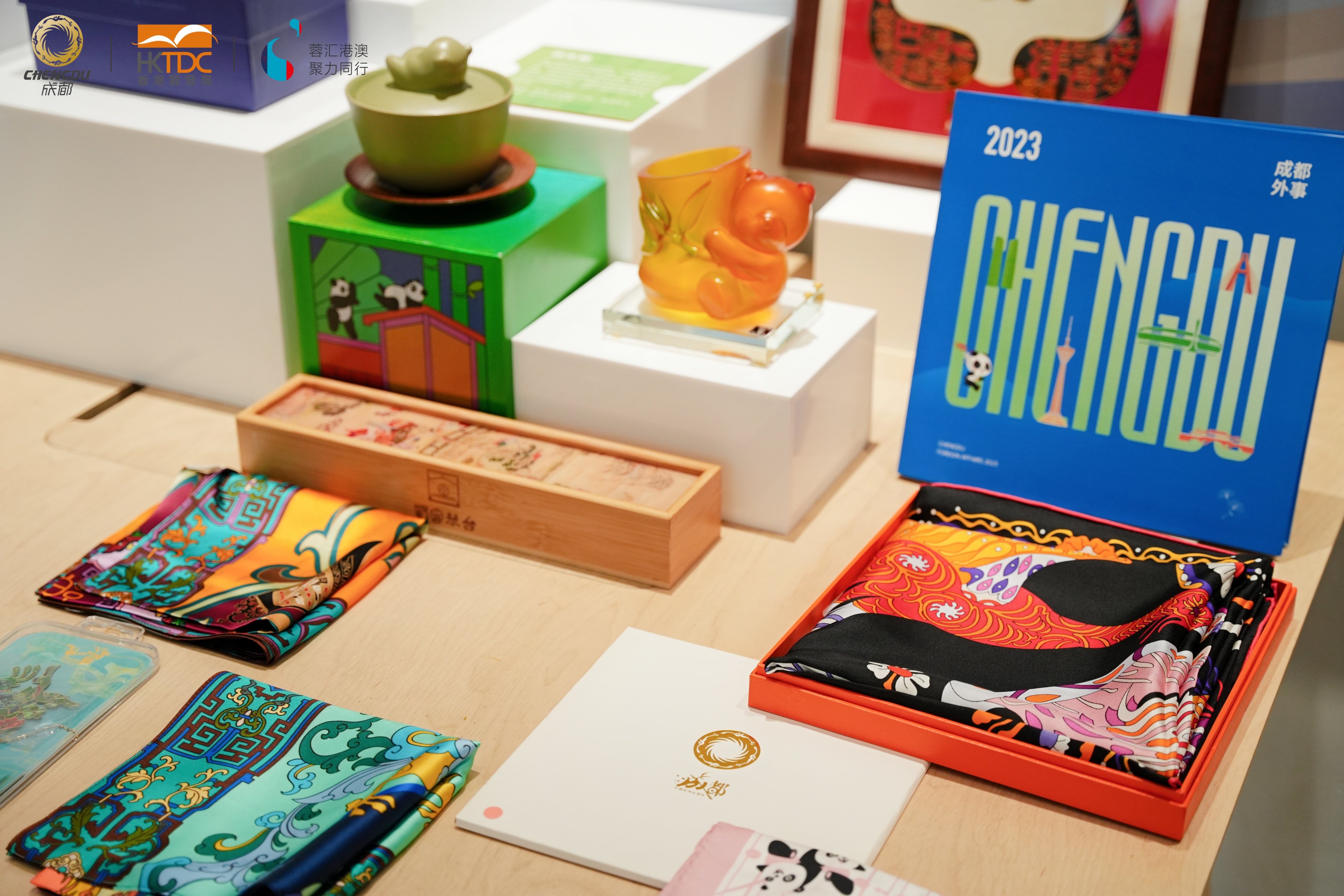 活動現場還專門設立了文創展區,展陳成都外事禮品、城市禮物、景區文創、參會企業文創、博物館文創及獨立設計師文創等豐富多樣的文創產品。「承脈」展陳不僅展現了成都的文化底蘊與創意精神,也為參會嘉賓提供了近距離感受文創魅力的平台,探索潛在的商業合作機會。