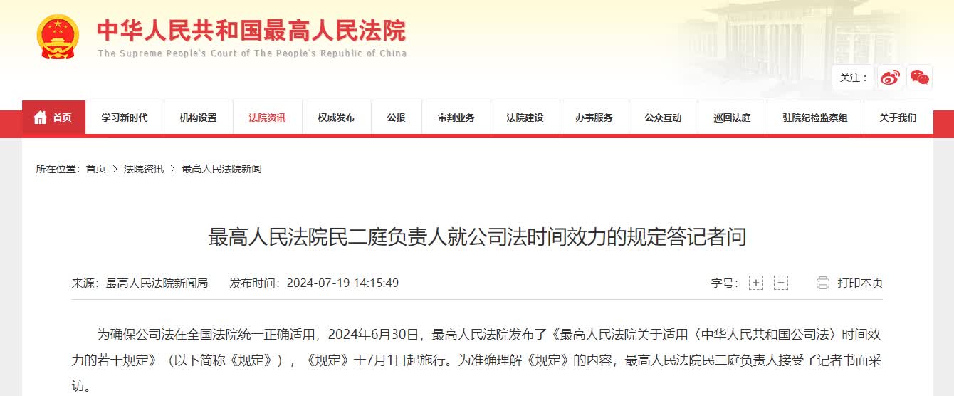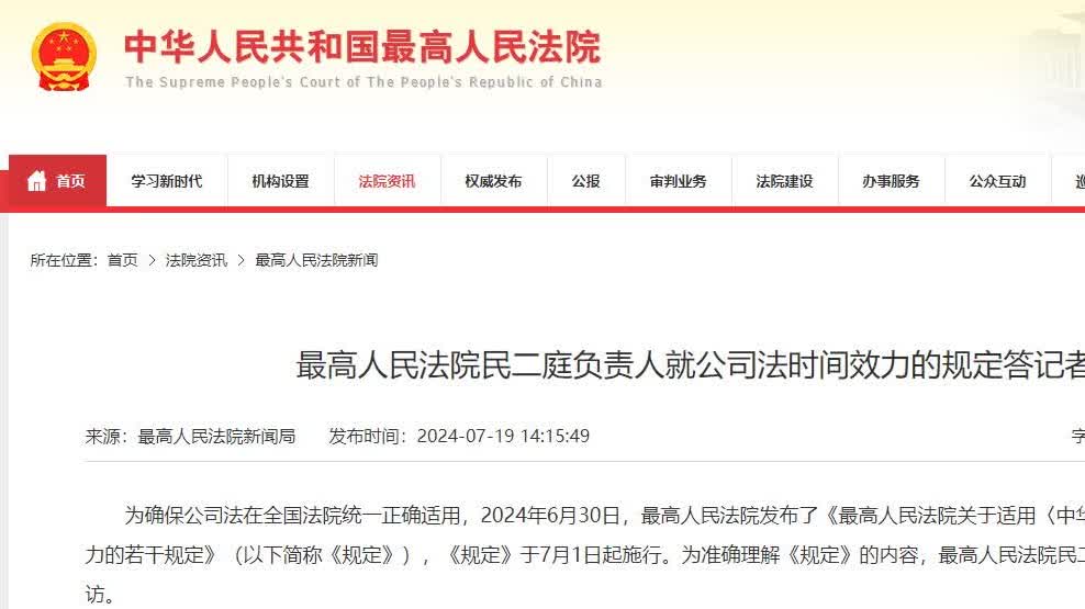據最高人民法院消息,為確保公司法在全國法院統一正確適用,《最高人民法院關於適用〈中華人民共和國公司法〉時間效力的若干規定》於7月1日起施行,《規定》就當前法院在審判工作中如何做好新舊法律銜接適用作出具體規定。為準確理解《規定》,最高人民法院今天就《規定》的重點內容進行了介紹。