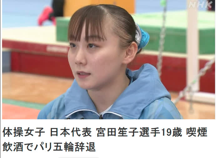 據環球網援引日本放送協會(NHK)19日報道,日本體操協會當天宣布,19歲的日本女子體操隊隊長宮田笙子因為被發現吸煙和飲酒,違反行為準則,將被剝奪參加奧運會比賽的資格。此時,距離7月26日巴黎奧運會開幕僅剩下一周時間。