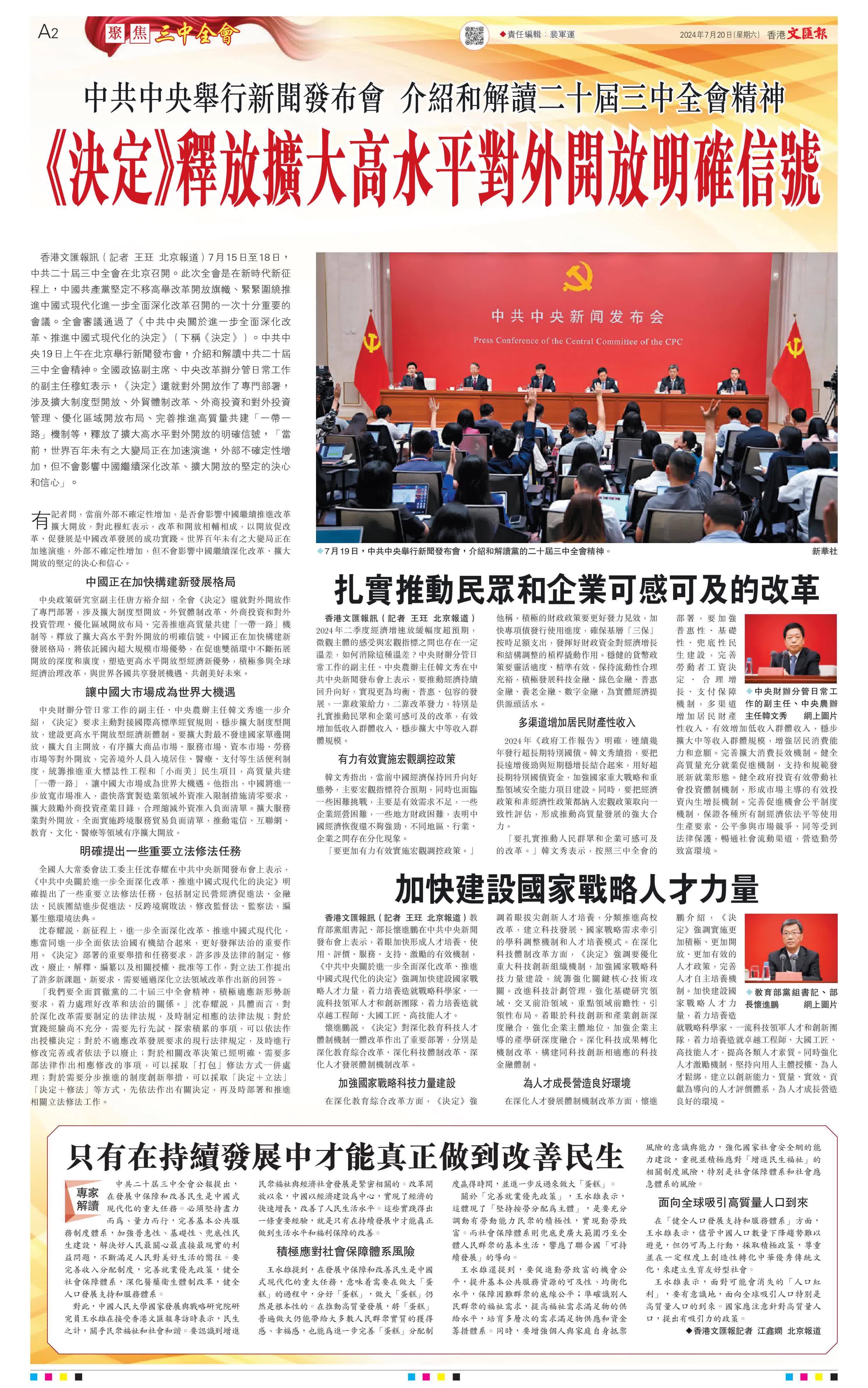 (來源:香港文匯報A02:要聞 2024/07/20)