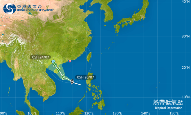 天文台指,在上午8時,該熱帶低氣壓集結在西沙之東南偏東約310公里,預料向西北偏西移動,時速約18公里,橫過南海中部。同時,位於西北太平洋的熱帶低氣壓集結在馬尼拉以東約920公里,預料向西北移動,時速約15公里,橫過菲律賓以東海域。