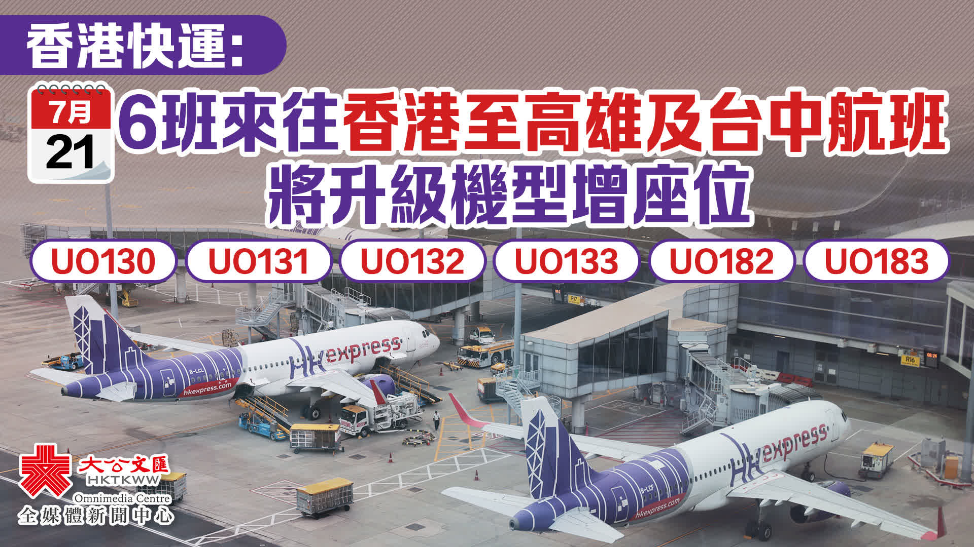 香港快運指出,已於本港機場及其他受影響機場加配人手,盡力確保今天其餘航班如常運作;另外已將6班明日(21日)分別來往香港至高雄、香港至台中的航班,升級至A321機型以增加座位,受今日航班取消影響、並希望盡快出發的旅客,可聯絡快運的客戶聯繫團隊更改航班。有關6班航班包括UO130、UO131、UO132、UO133、UO182及UO183。