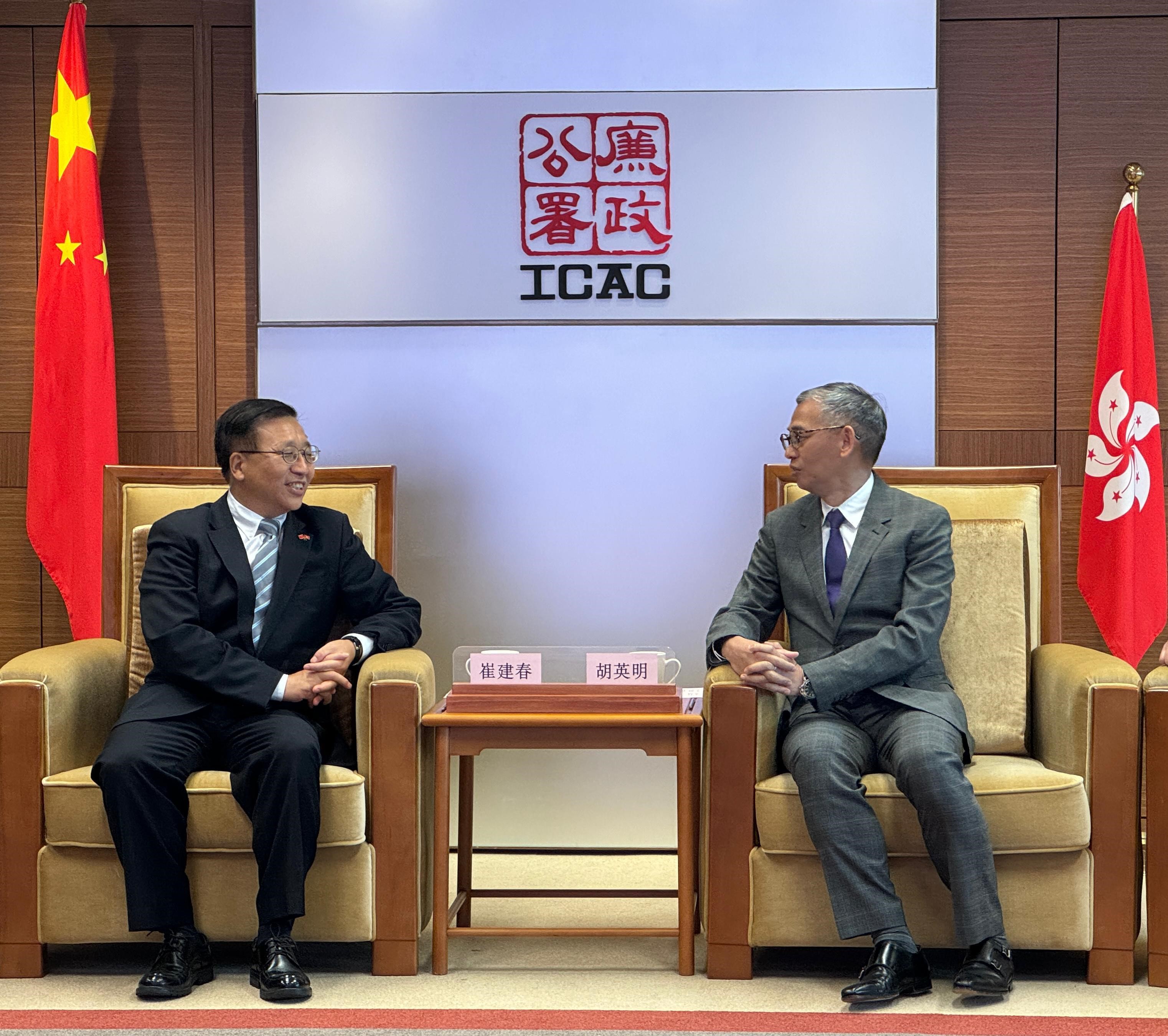 胡英明向崔建春特派員介紹香港國際廉政學院的發展方向,雙方亦就國際和地區反腐問題交換意見。
