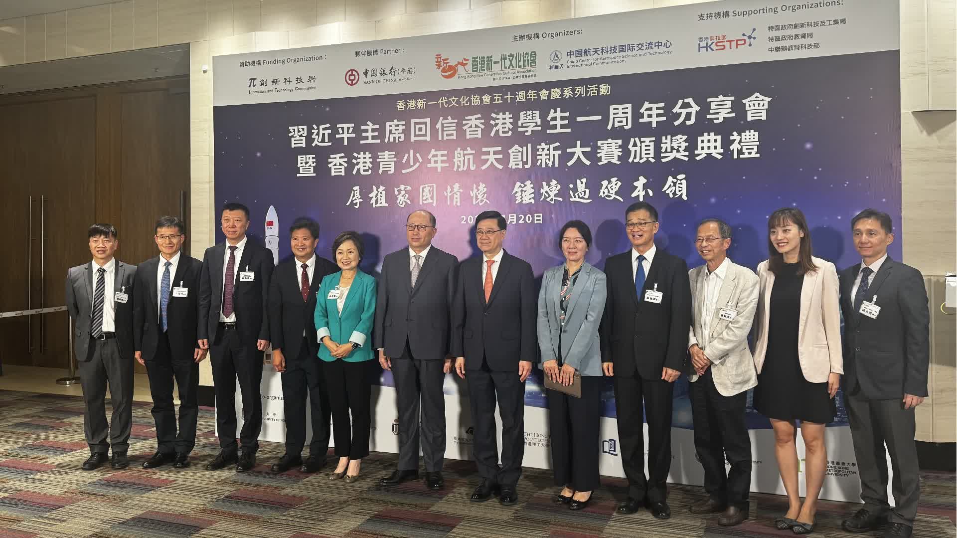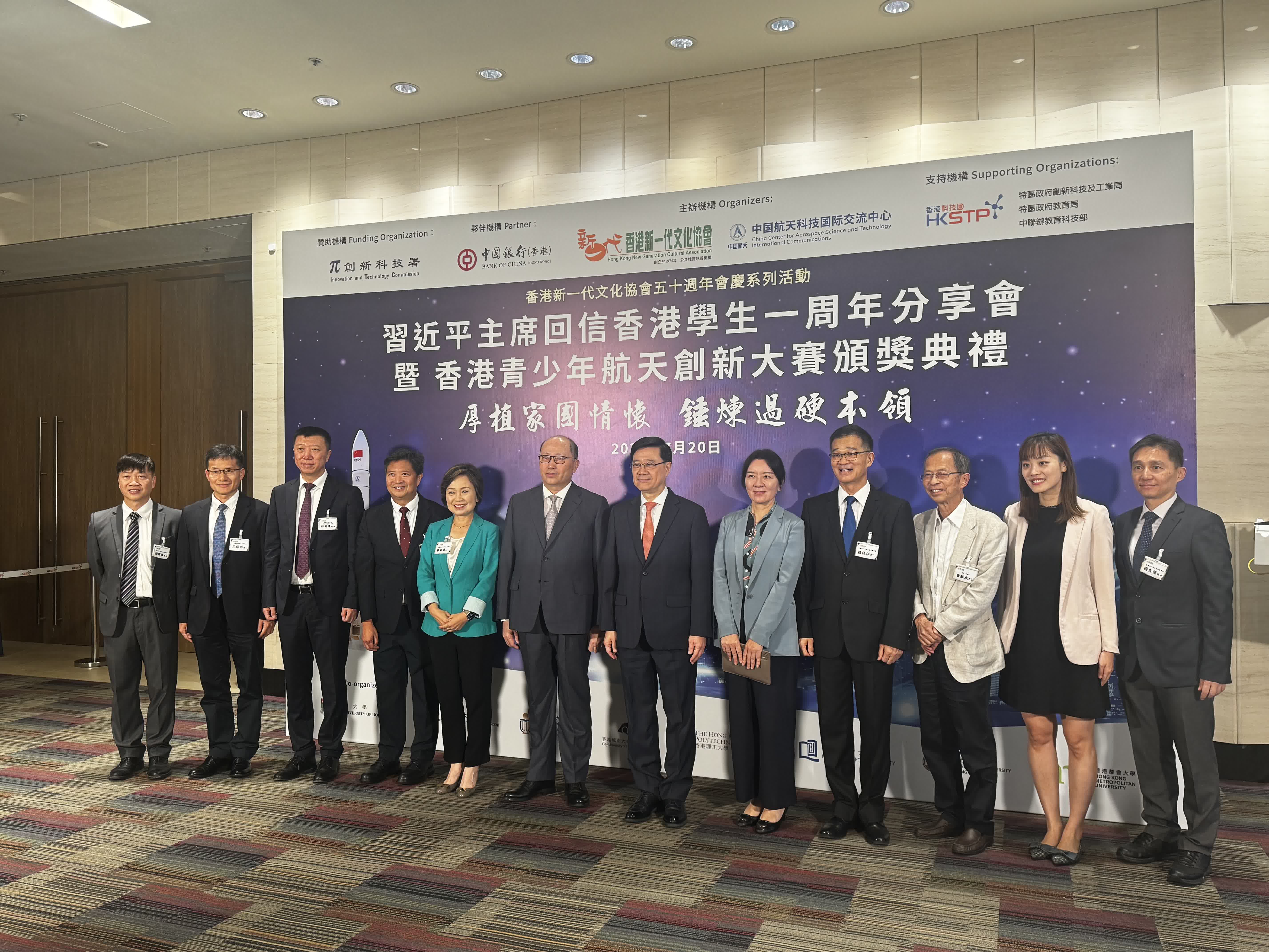 香港新一代文化協會回應習近平主席回信重要精神,與中國航天科技國際交流中心共同組織及舉辦了「第三屆香港青少年航天創新大賽」,其中最優秀的40多個項目將組成「香港特別行政區代表隊」,參加今年8月16至20日在海南省文昌市舉行的「第三屆全國青少年航天創新大賽」。今日(20日)下午,在香港科學園隆重舉行「習近平主席回信香港學生一周年分享會暨香港青少年航天創新大賽頒獎典禮」。邀得行政長官李家超、中央人民政府駐香港特別行政區聯絡辦公室主任鄭雁雄親臨主禮。出席活動的主禮嘉賓還包括:中央人民政府駐香港特別行政區聯絡辦公室副主任盧新寧、教育科技部部長王偉明、香港特區政府教育局局長蔡若蓮、創新科技及工業局副局長張曼莉,以及培僑中學校監曾鈺成 ,中國銀行(香港)副總裁兼風險總監徐海峰。