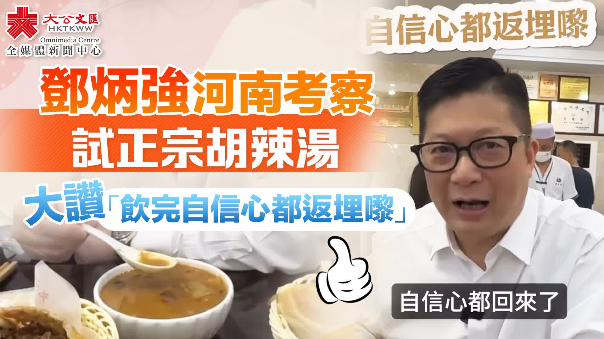 今早(21日),鄧炳強就帶大家一同品味當地地道早餐美食。他在社交平台上載短片,指上次去西安考察早餐喝胡辣湯,好多網民都留言說正宗的胡辣湯其實源自河南,所以今次他和青年領袖來河南考察,當然要試一試大家都說正宗的胡辣湯!