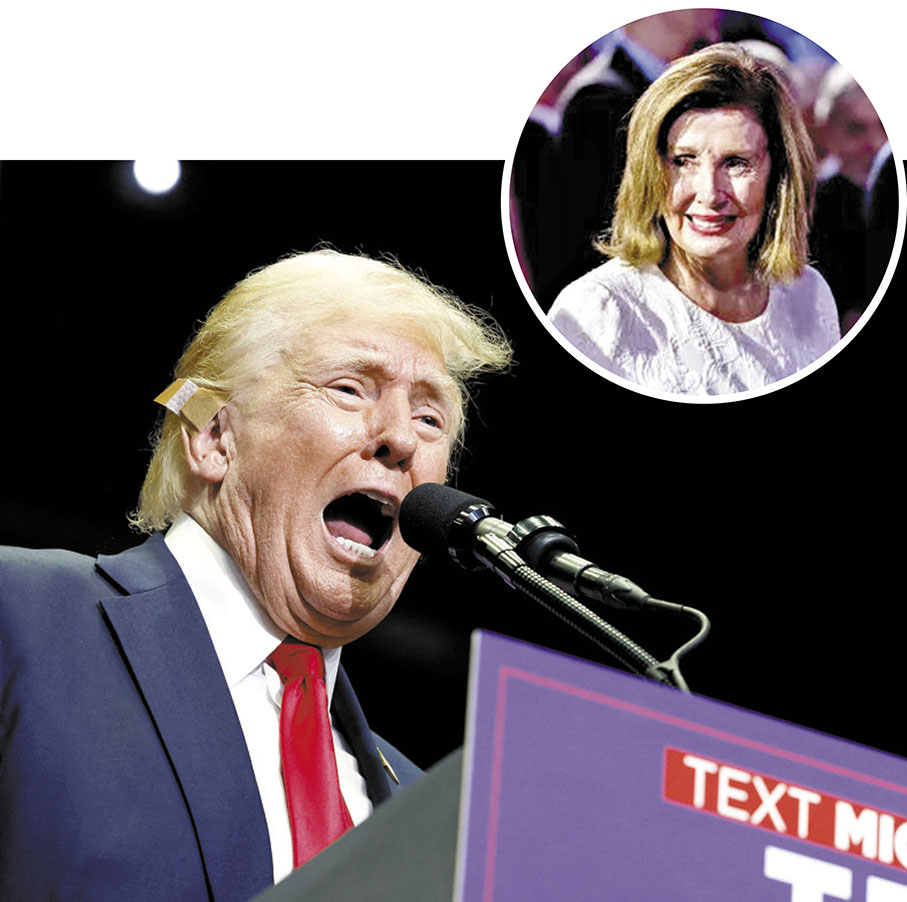 香港文匯報訊,美國前總統、共和黨總統候選人特朗普上周六(7月20日)與競選拍檔萬斯,一同出席在密歇根州大急流城舉行的競選集會,是特朗普被槍擊後首次現身競選集會。他在長達100分鐘的演講中,嘲諷民主黨有意更換總統候選人,指前眾議院議長佩洛西向總統拜登逼宮,是背叛拜登。