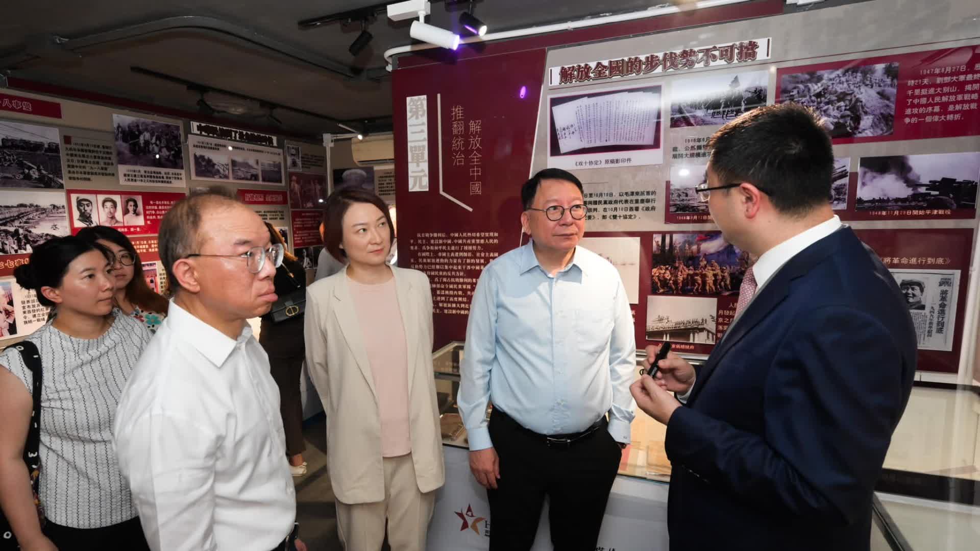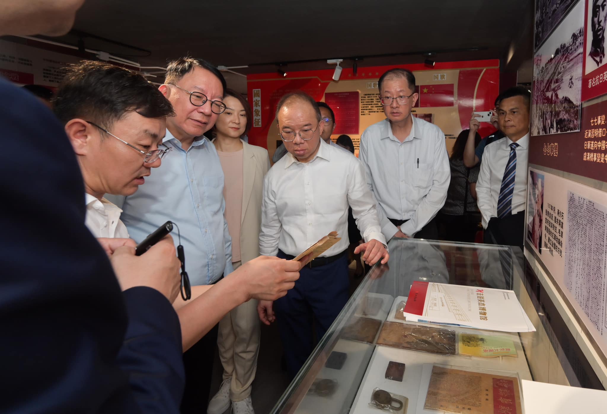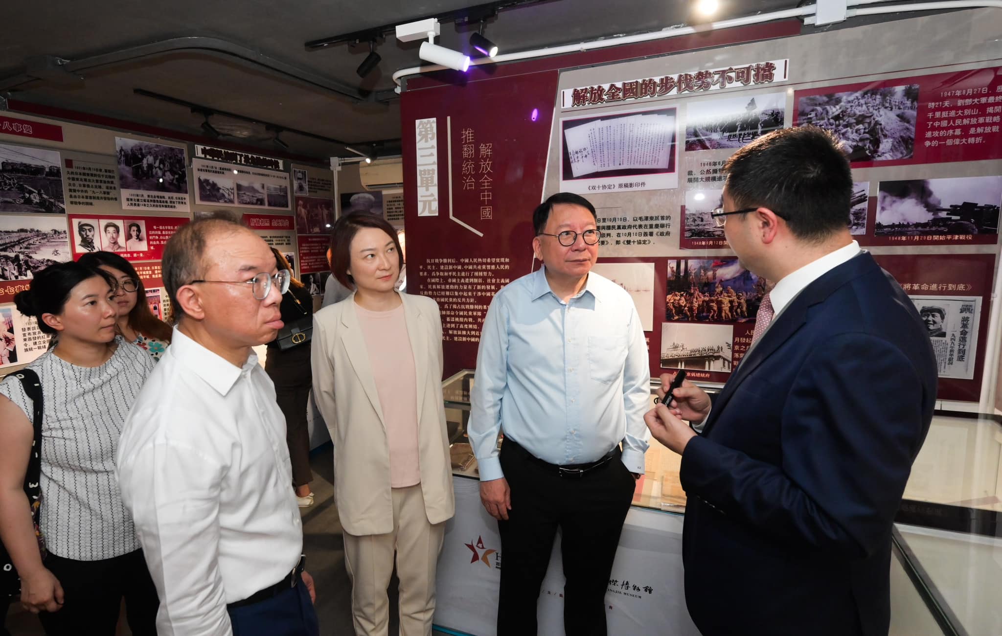 大公文匯全媒體報道,為深入調研民間推廣愛國主義教育的工作,今日(22日)下午,政務司司長陳國基聯同政制及內地事務局局長曾國衞、工作小組組長李慧琼實地考察兩個愛國主義教育基地,包括位於沙頭角的全港首間抗戰紀念館,以及位於新田永平村的香港愛國主義教育展廳。