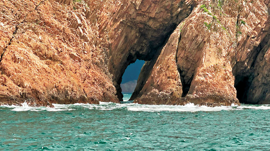 香港文匯報記者近日應邀體驗的西貢奇洞星空與海洋深度遊一日團,是親水樂悠遊主題的「至尊路線」。行程當日,記者與一眾參與體驗的導遊等業界人士從西貢碼頭乘船出發,前往地質公園。途中,導遊向團友介紹船隻經過的島嶼,以及香港相關地質知識,包括香港十大島嶼和香港世界地質公園相關資訊,如主要地質特色有流紋質火山岩六角形岩柱等。