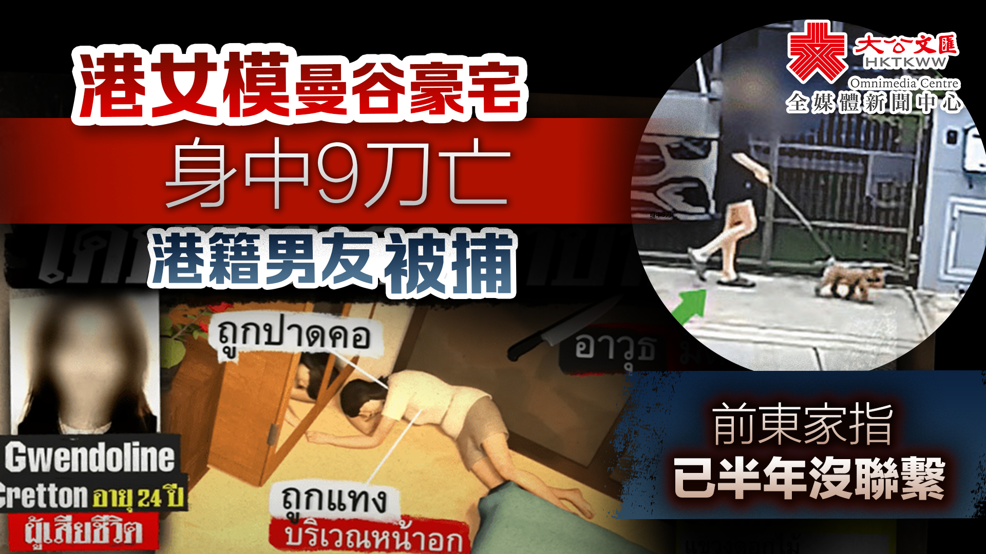 大公文匯全媒體報道,據泰國媒體上周六(20日)報道,曼谷市上周四(18日)發生一宗涉及港人的恐怖謀殺案。消息指,被害者是一名年輕的香港女模特兒,身中9刀慘死,其同是香港人的男友事後被當地警方拘捕,惟有人否認殺人,堅稱女友是自殺身亡。
