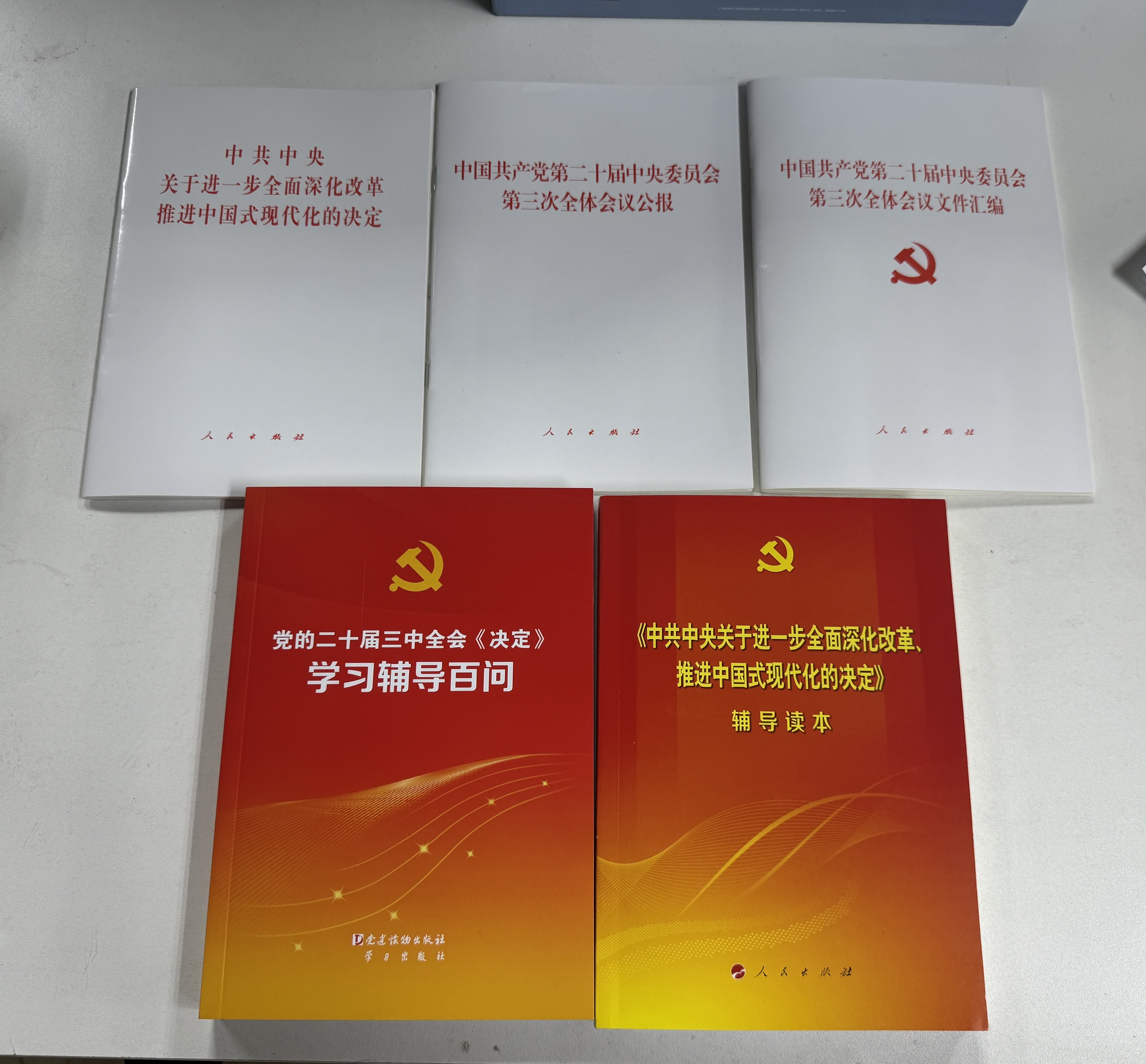 此次由人民出版社、黨建讀物出版社、學習出版社共同推出的5種大會文件及學習輔導材料包括《中共中央關於進一步全面深化改革、推進中國式現代化的決定》單行本、《中國共產黨第二十屆中央委員會第三次全體會議公報》單行本、《中國共產黨第二十屆中央委員會第三次全體會議文件匯編》《〈中共中央關於進一步全面深化改革、推進中國式現代化的決定〉輔導讀本》和《黨的二十屆三中全會〈決定〉學習輔導百問》,為學習貫徹二十屆三中全會精神提供了權威準確的讀本。