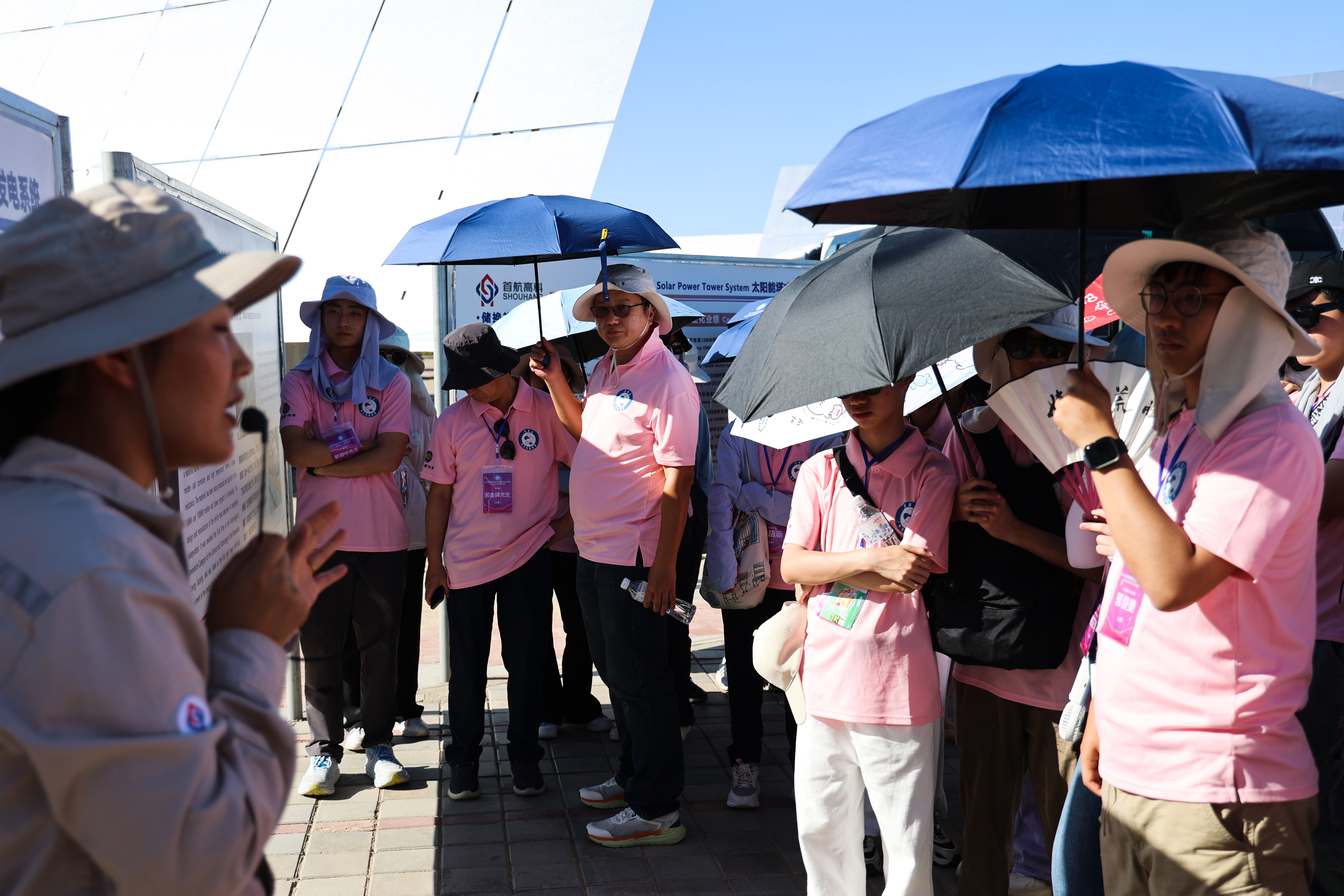 「什麼是熔鹽塔式光熱電站?發電的原理是什麼?」「為什麼這裏能有如此大規模的新能源產業?」……在位於敦煌市西約20公里處的敦煌光電產業園區,這裏矗立着中國乃至亞洲規模最大的熔鹽塔式光熱電站——首航高科敦煌100兆瓦熔鹽塔式光熱電站,被譽為「超級鏡子發電站」。在吸熱塔前,港生們對中國新能源技術應用和產業發展表現出極大興趣,在不斷提問的同時,還用手機記錄下眼前的震撼場景。「太神奇了!戈壁灘上原本寸草不生,但國人卻充分利用了自然和科技的力量,讓一切不可能變得可能,讓戈壁灘充滿生命氣息。」路德會呂明才中學的學生黃靜儀感慨道。