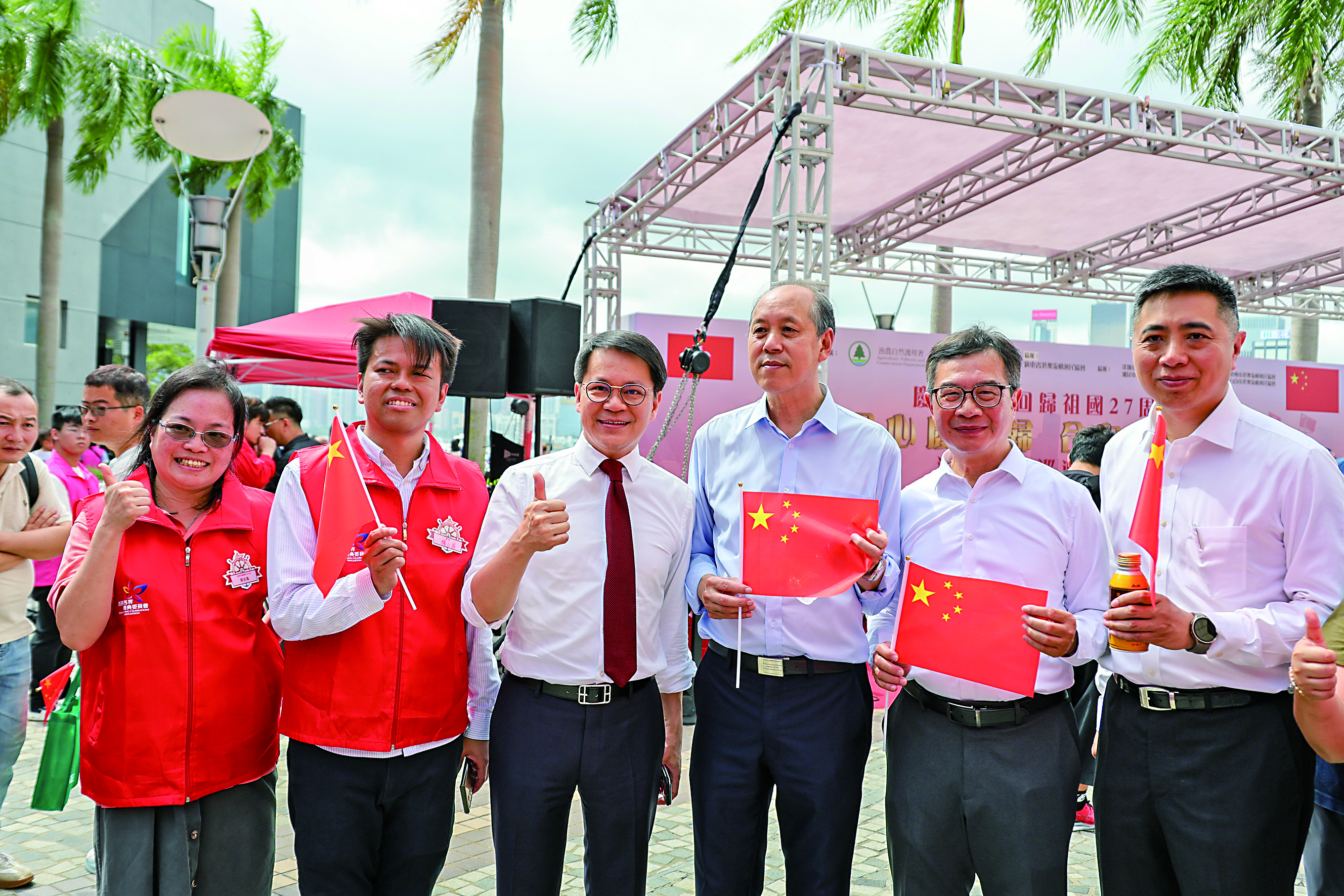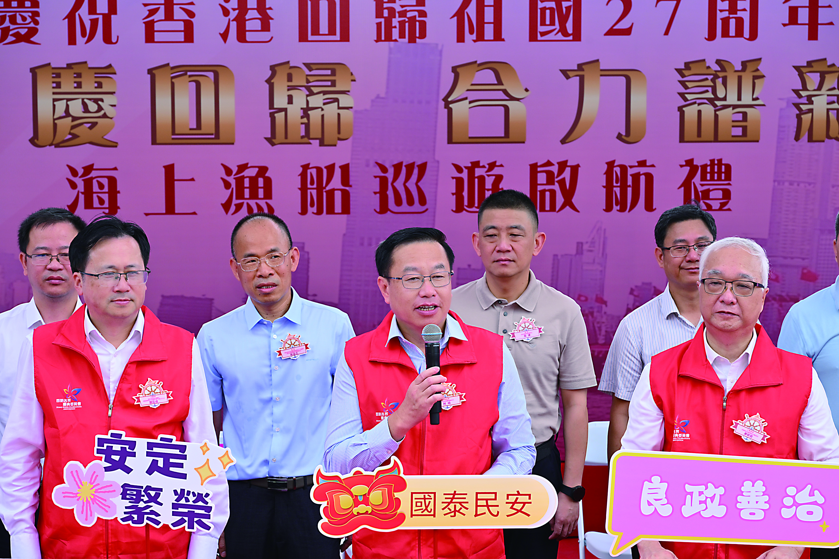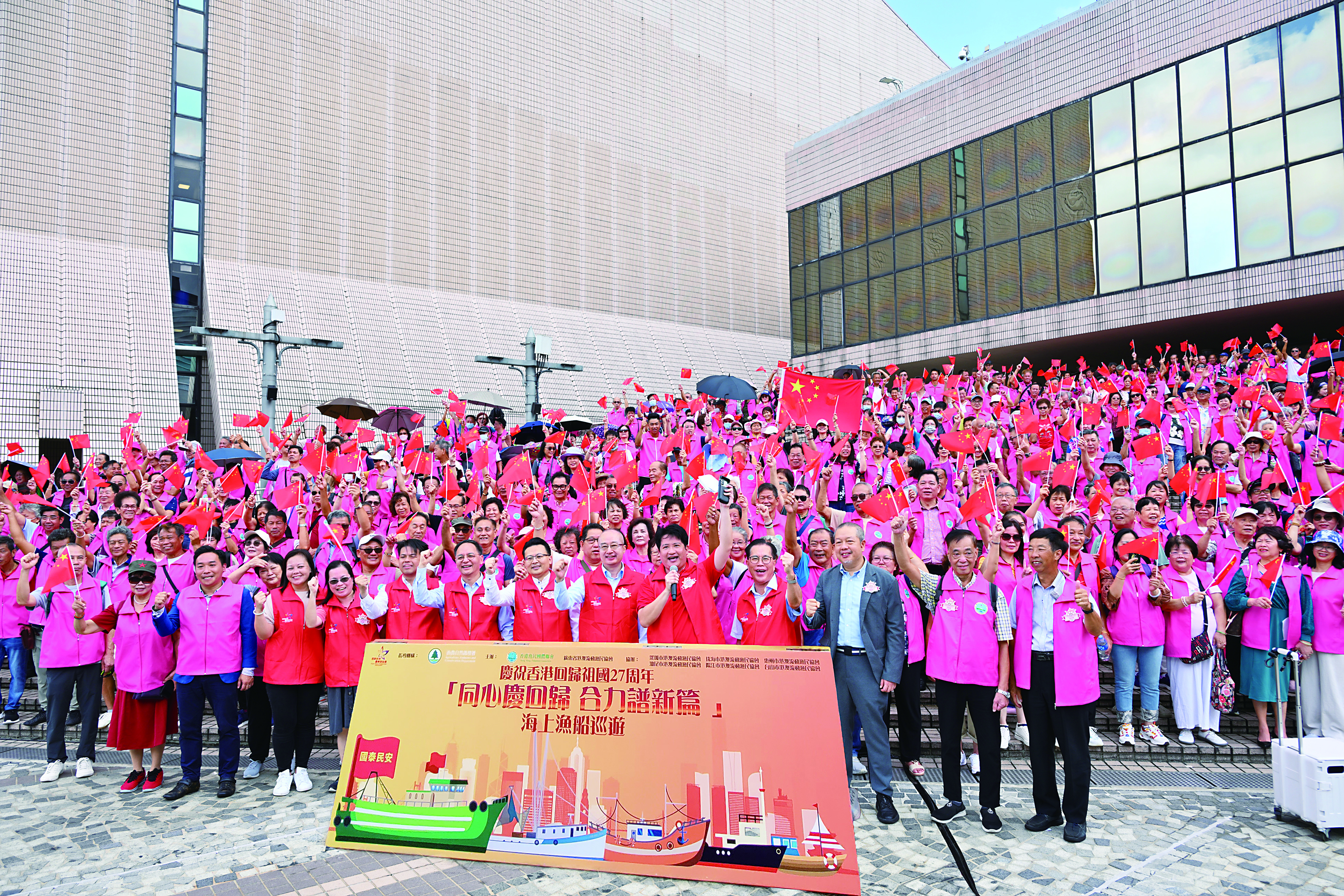 由香港漁民團體聯會與廣東省港澳流動漁民協會聯合主辦、特區政府漁農自然護理署作為指導單位的慶祝香港回歸祖國27周年海上漁船巡遊啟航禮活動於7月1日圓滿舉行。中央政府駐港聯絡辦副主任何靖、香港特區政府環境及生態局局長謝展寰、廣東省農業農村廳廳長劉棕會等應邀出席主禮。當天組織了27艘大型漁船在維港巡遊,船上帶着「國泰民安」、「一國兩制 行穩致遠」、「國安家好」等美好祝福的旗幡,以此慶祝香港回歸祖國27周年,祝福「一國兩制」行穩致遠。