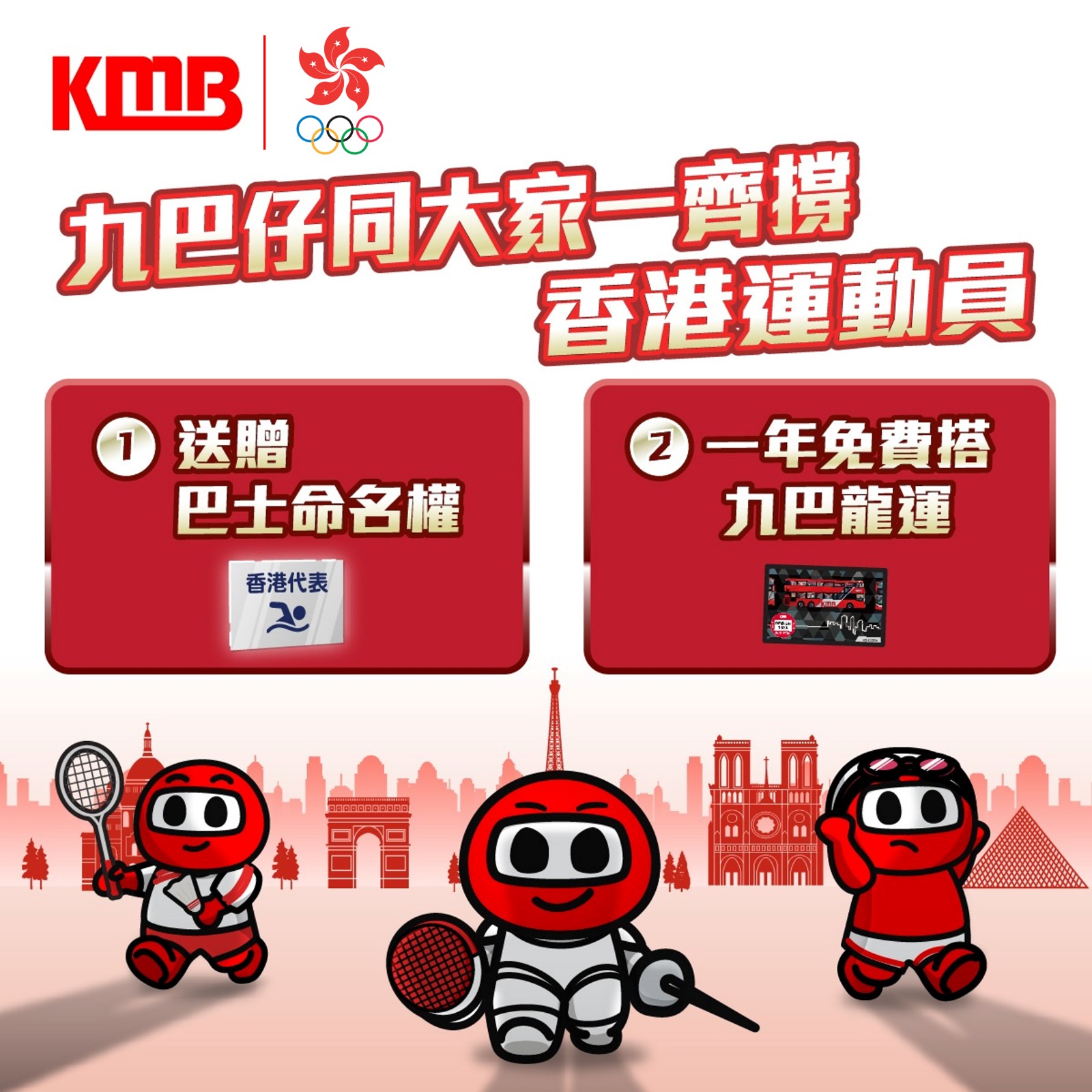 此外,九巴將推出全新「支持港隊」主題巴士,與全港市民一齊支持奧運港隊健兒,九巴祝願各位港隊代表在巴黎奧運屢創佳績。