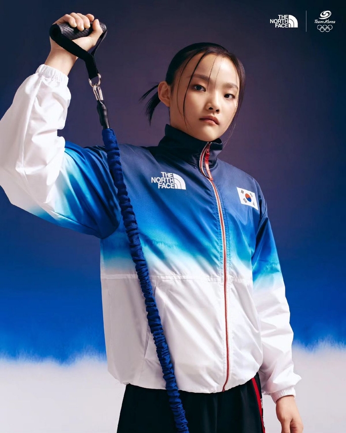 ✅韓國隊進場服由當地服裝品牌MUSINSA設計,以灰藍色為主調,太極圖案的銀色頸鏈和印有TeamKorea的白色波鞋。頒獎服由韓國隊一直以來的贊助商「TheNorthFace」負責,設計突出韓國國旗中的「陰陽」「八卦」等太極圖案。
