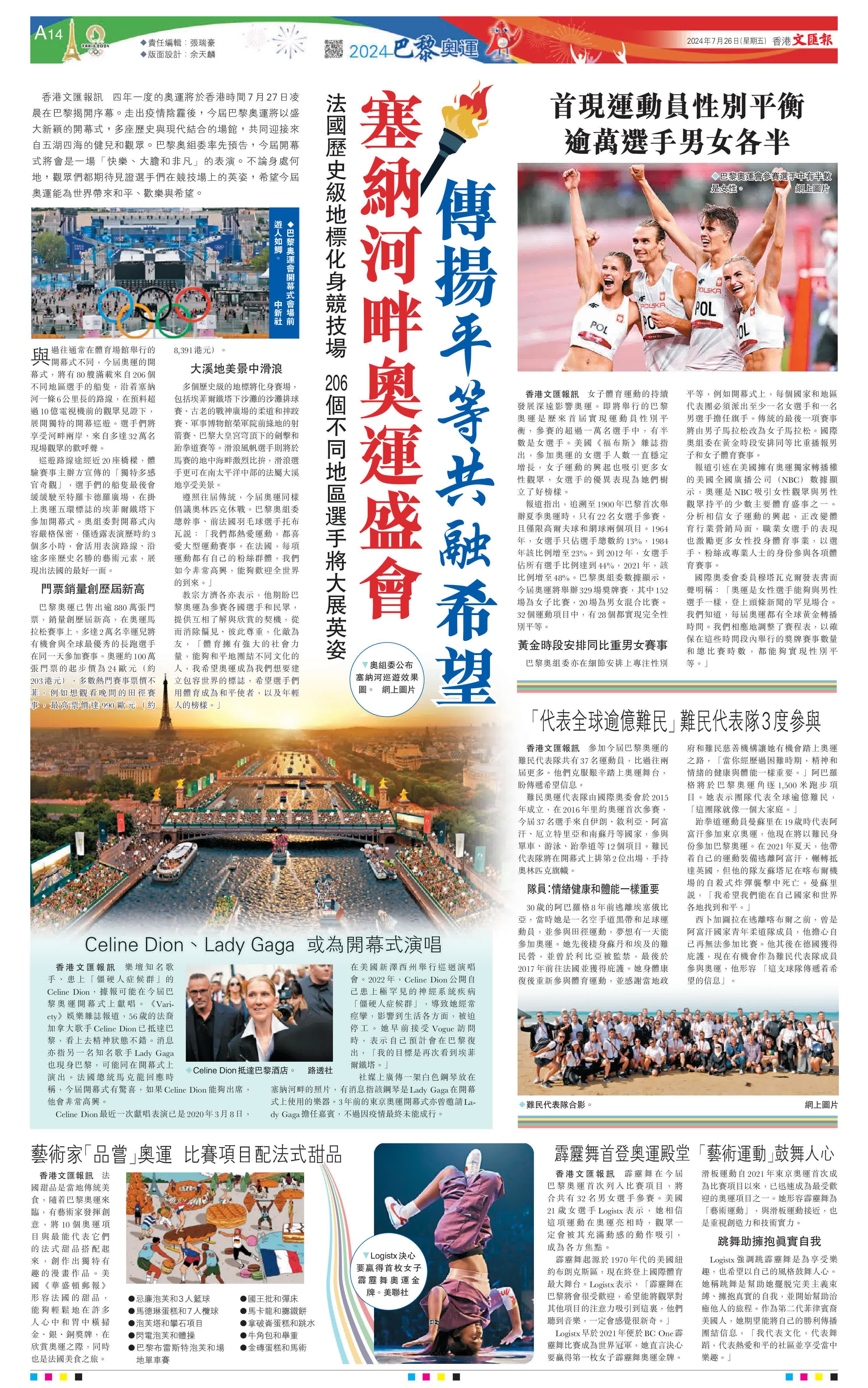 (來源:香港文匯報A14:2024巴黎奧運 2024/07/26)