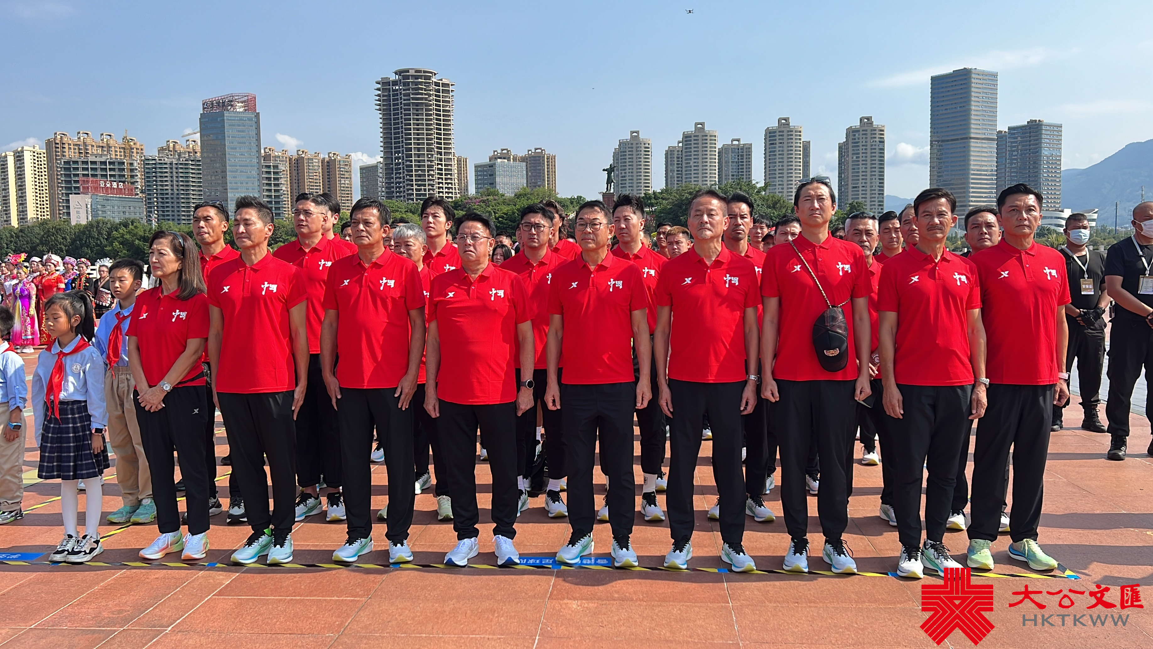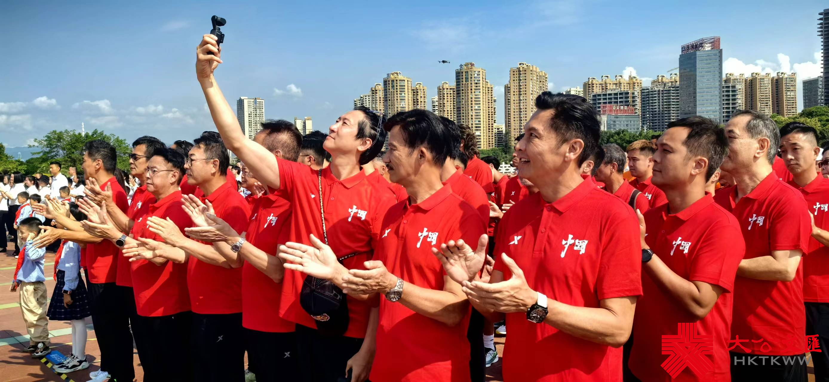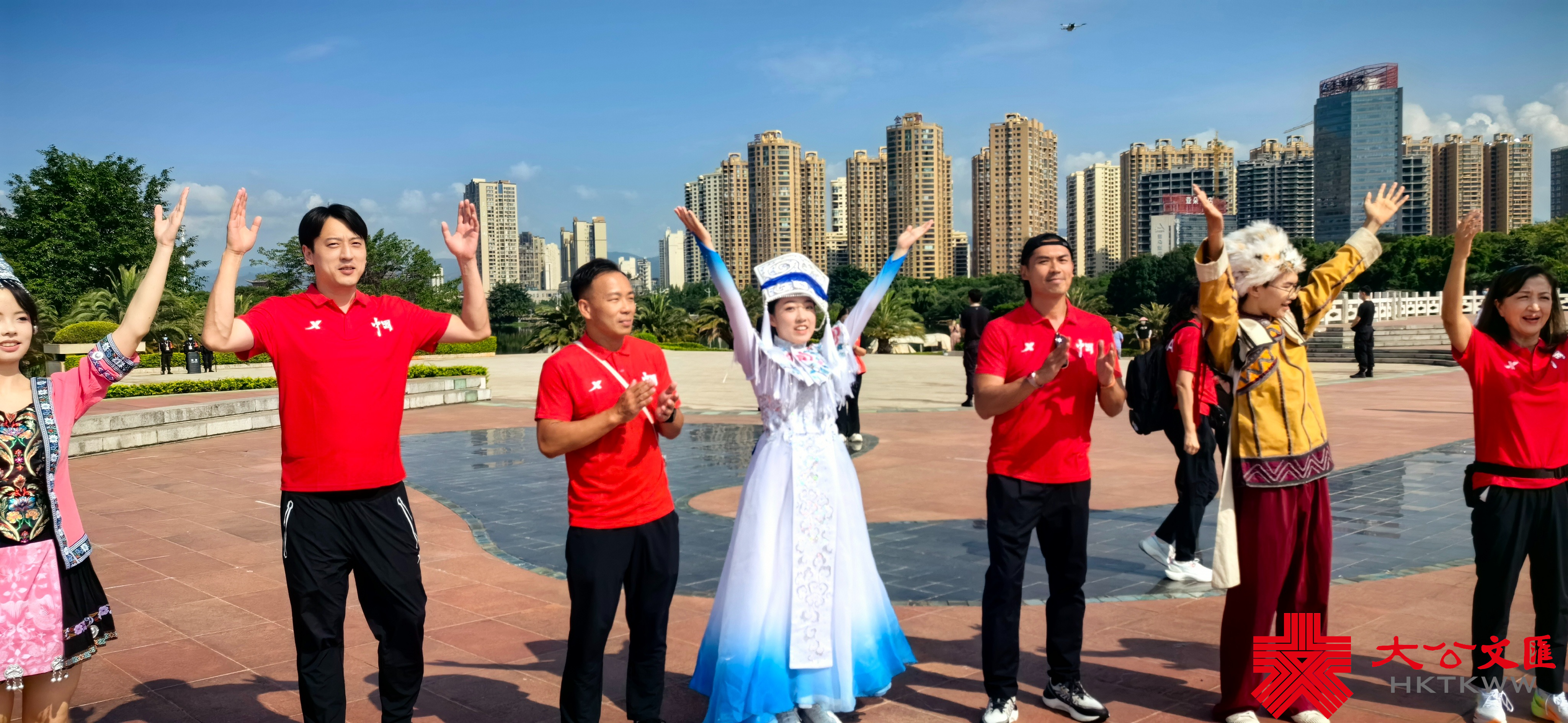 當五星紅旗高高升起,香港明星隊員們情不自禁在《愛我中華》的歌舞聲,與身着56個民族服飾的群眾在國旗下圍成一圈,與大家共同快樂打跳,並高興地與手舉「守望相助,手足情深」「共同團結奮鬥,共同繁榮發展」「同唱一首歌,同為一家人」「鑄牢中華民族共同體意識」字牌的球迷歌迷合影。是時玉溪室外溫度接近30度,而快樂融洽的氣氛十分高漲,感染了每一個在場的人。