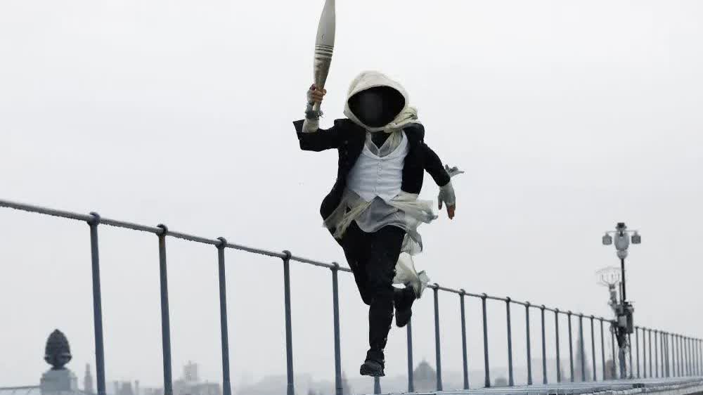 神秘火炬手的靈感源於法國文化中一些知名的蒙面角色,他戴着面具,跟隨運動員行進在隊伍中,或穿梭在沿岸各種建築屋頂上,或通過滑索從聖路易島穿越塞納河,他目睹了巴黎聖母院腳手架上工人的舞蹈表演,走進夏特萊劇院觀看了《悲慘世界》音樂劇排練,並從盧浮宮的傑作前走過,進入到穿越時空的電影和科幻小說的世界中……